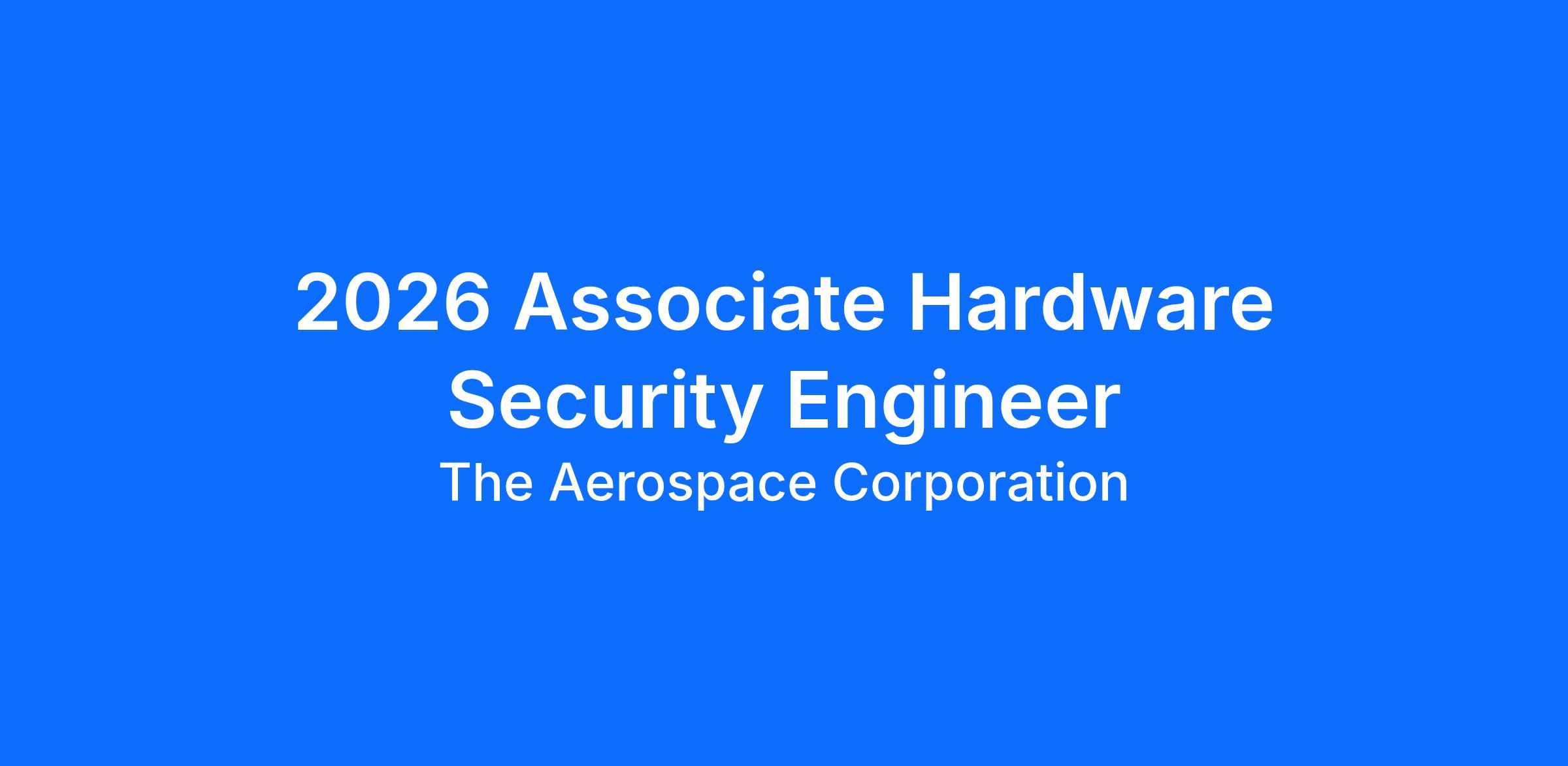 The Aerospace Corporation is hiring a Hardware Security Engineer for the Information Systems and Cyber Division (ISCD). Position will be full-time, 100% onsite at our office in El Segundo, CA.
