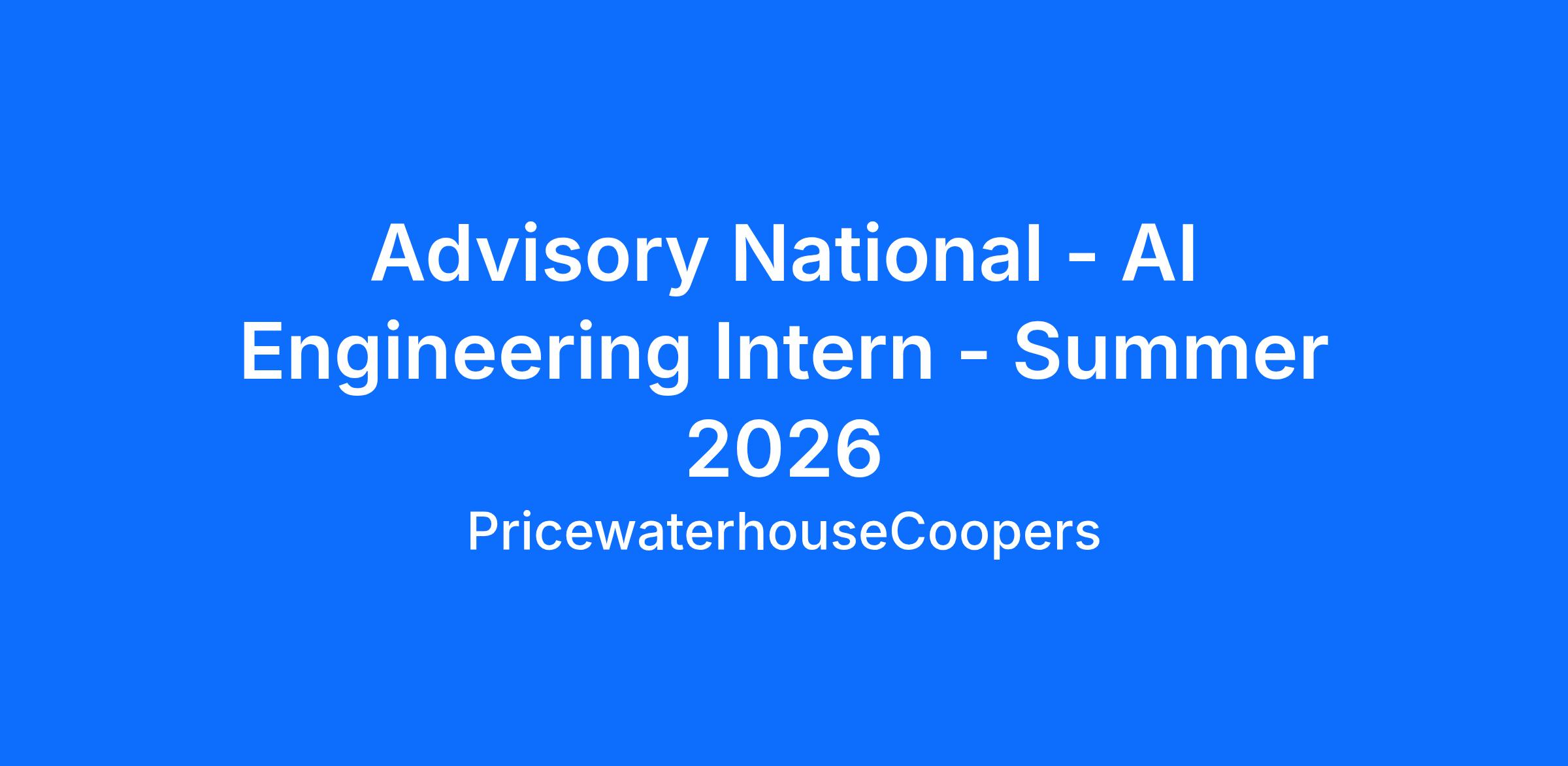 As an Advisory National - AI Engineering Intern, you will immerse yourself in the dynamic world of data science and machine learning engineering, gaining exposure to cutting-edge technologies and methodologies. This role offers a unique chance to support client-facing projects, where you will contribute to the development and implementation of innovative AI solutions. As an Intern, you will engage in a learning journey, supporting teams with basic tasks, observing professional work environments, and participating in projects that enhance your understanding of PwC's practices. This is an opportunity to develop your personal brand while contributing to the team's success.