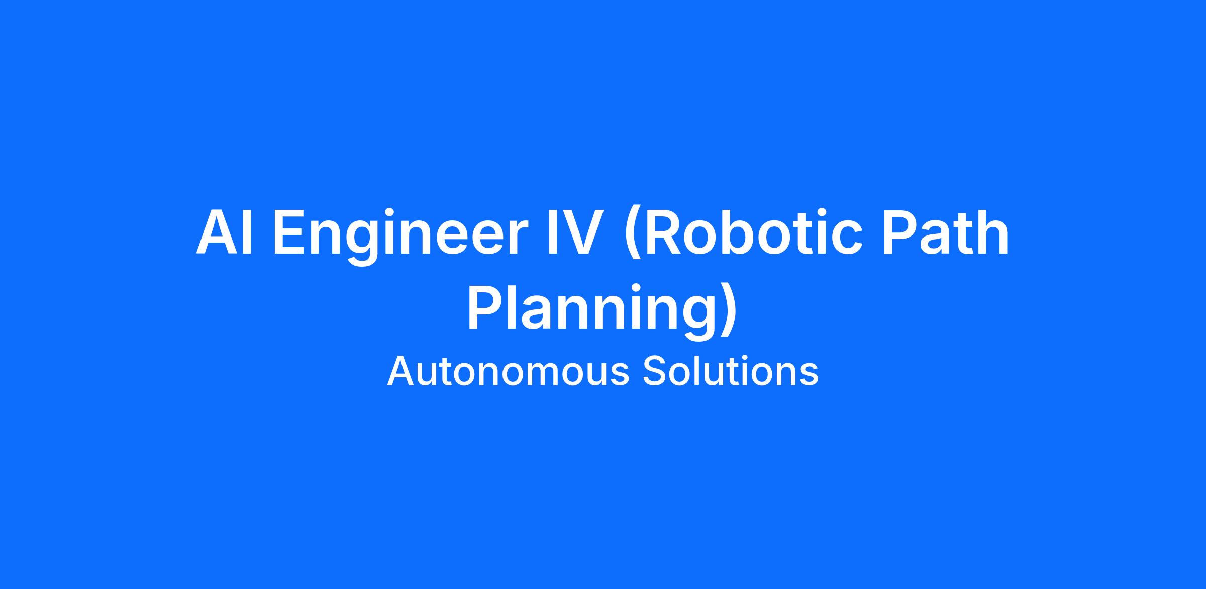 As an AI Engineer IV (Robotic Path Planning), you will develop AI-driven planning and decision-making systems that guide autonomous behavior across Autonomous Solutions Inc's robotic platforms. You will build intelligent planning algorithms, integrate them with motion planning, control, and simulation modules, and ensure safe, reliable autonomous operation in real-world conditions. Your work spans algorithm development through production deployment, with a focus on real-time performance, low-latency decision making, and compatibility with perception, control, and safety systems.