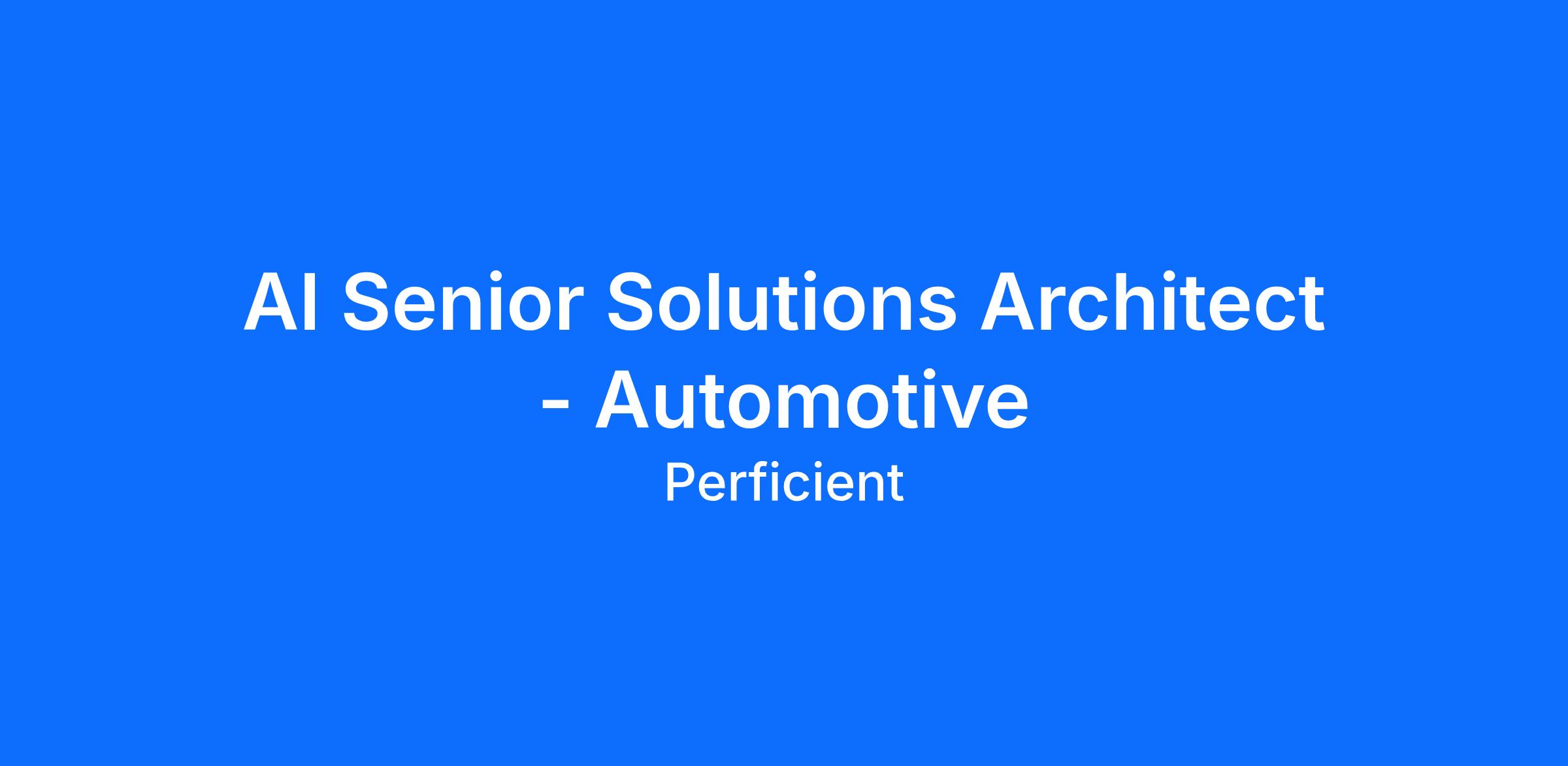 We currently have a career opportunity for an AI Senior Solutions Architect to join our team in support of clients within the Automotive Industry.