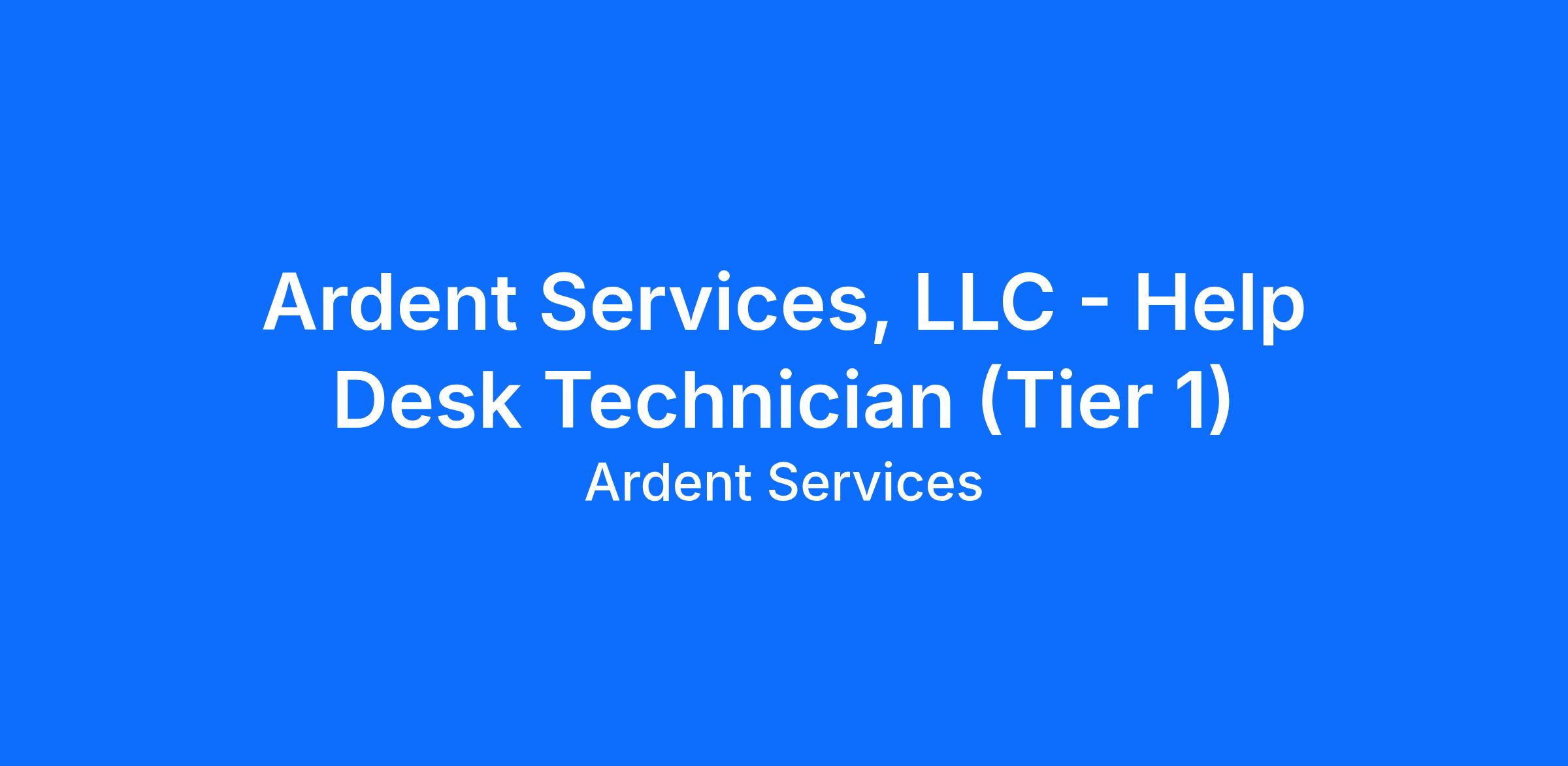 Ardent Services offers Full Time employees group Medical, Dental, Vision, and Disability plans as well as PTO and Paid Holidays.