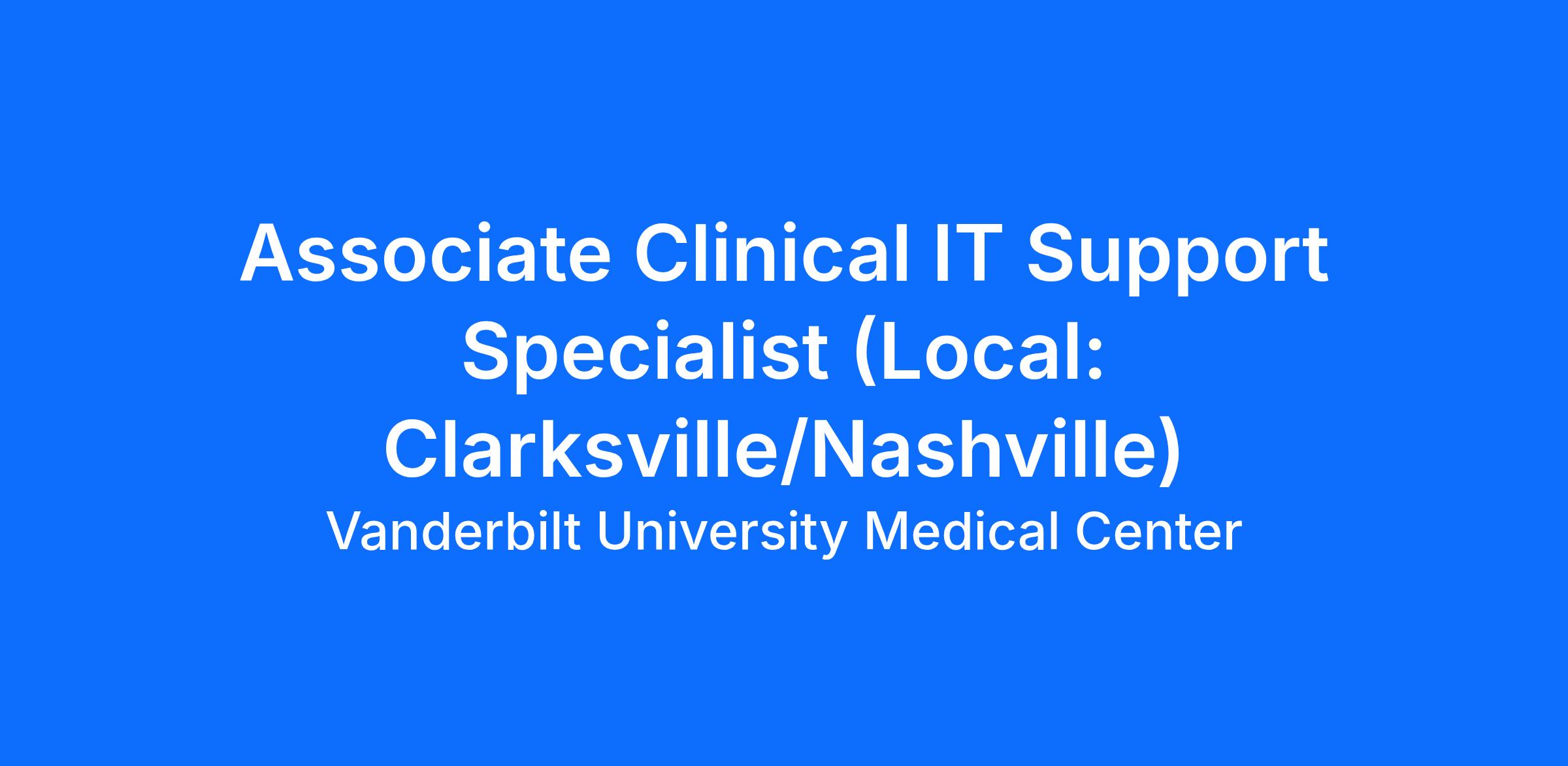 Associate'sVanderbilt Health is committed to fostering an environment where everyone has the chance to thrive and is committed to the principles of equal opportunity. EOE/Vets/Disabled.
