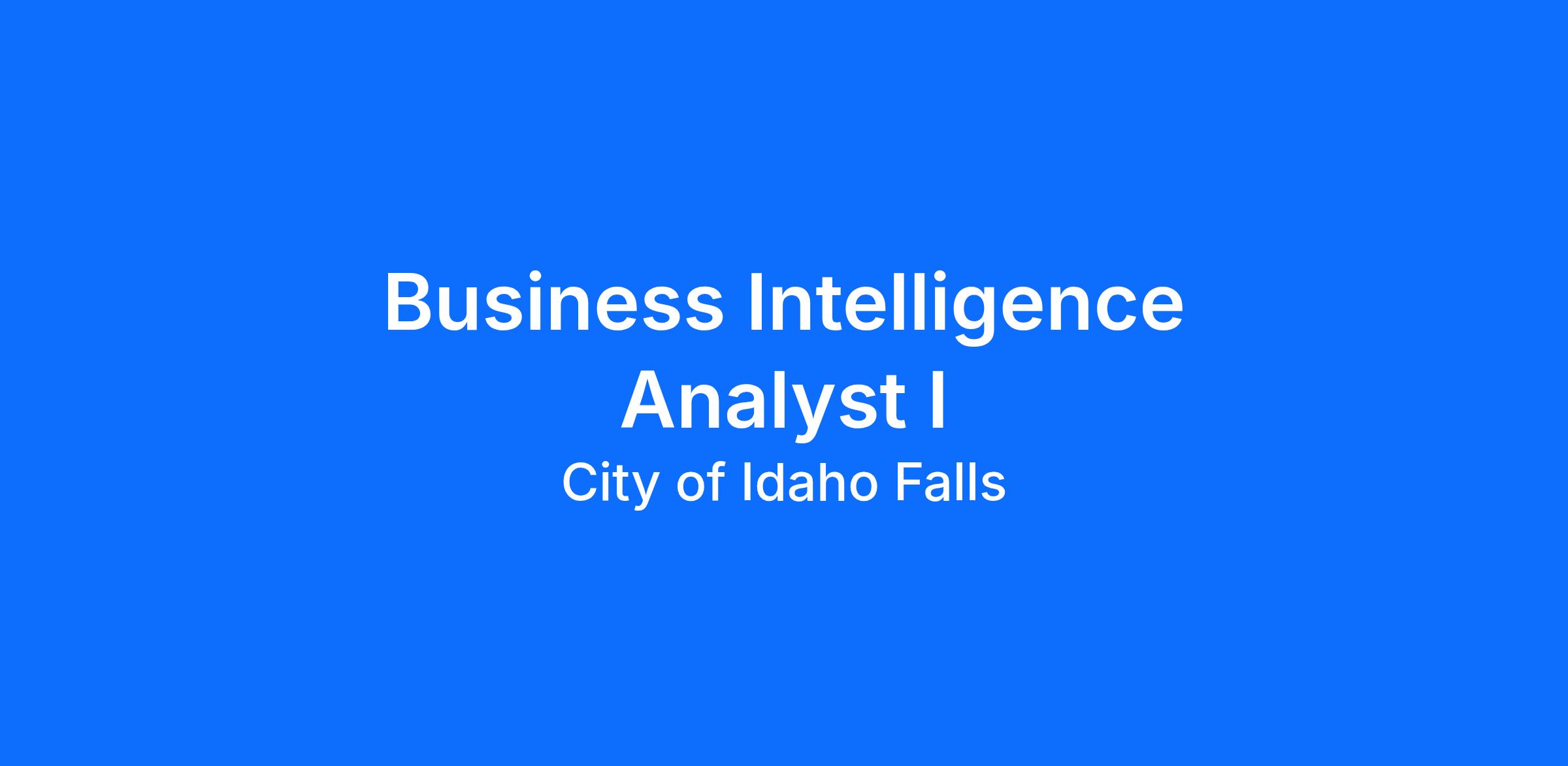 The City of Idaho Falls is accepting applications for a Business Intelligence Analyst I. This position is responsible for many complex technical duties related to the day-to-day operations of the city's ERP software and associated reporting. Installation and maintenance of City Information Technology systems and operations; including, software deployment, database maintenance, and reporting tools. This position may be required to take scheduled on-call for the city IT help desk rotating schedule.