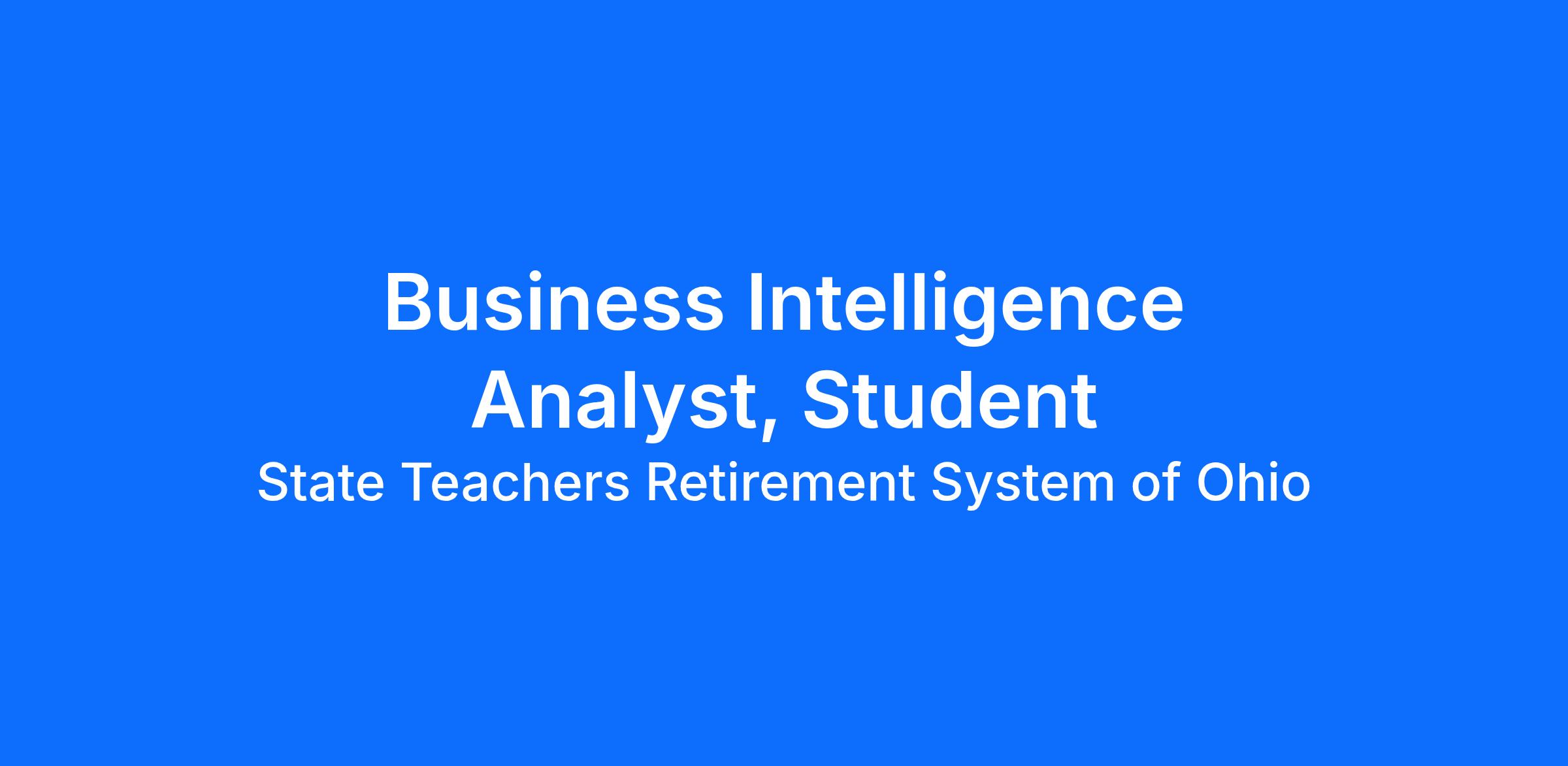 The State Teachers Retirement System of Ohio (STRS Ohio) is seeking a Business Intelligence Analyst, Student to join the Information Technology Services/Data and Digital Services team.