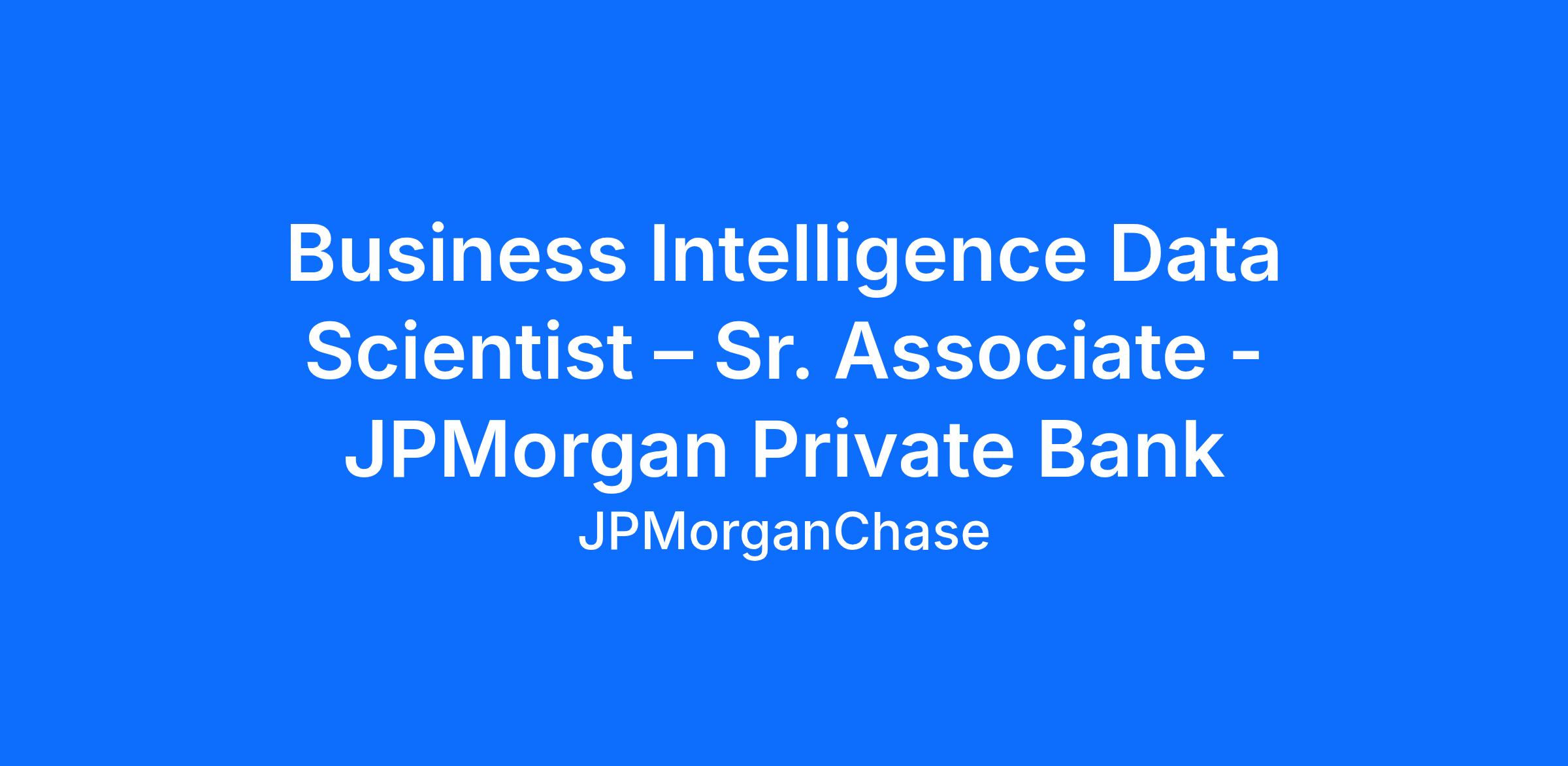DescriptionJoin the Business Intelligence team within the JPMorgan Private Bank and help shape strategy with advanced analytics and AI.