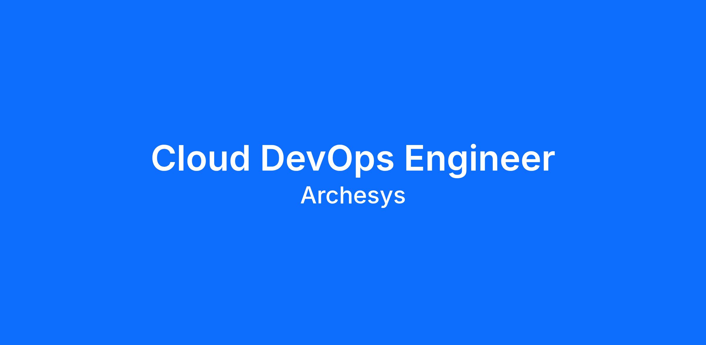 oin us at Archesys and be part of a team dedicated to delivering cutting-edge cloud solutions for clients in the public sector. Your expertise and passion for technology will help us continue to innovate and grow. We look forward to welcoming you to our team and supporting your success as a Cloud DevOps Engineer.