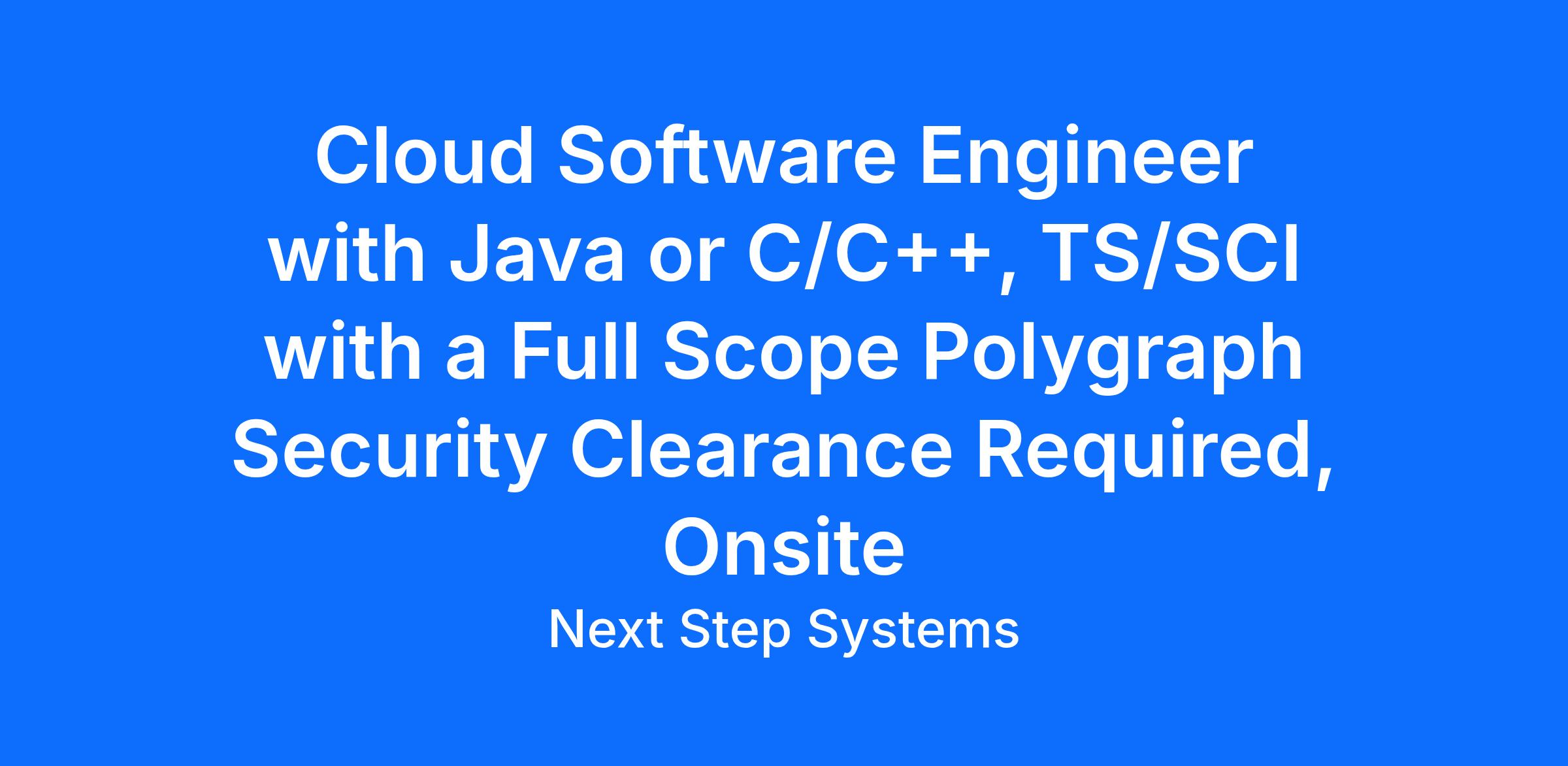 Cloud Software Engineer with Java or C/C++, TS/SCI with a Full Scope Polygraph Security Clearance Required, Onsite