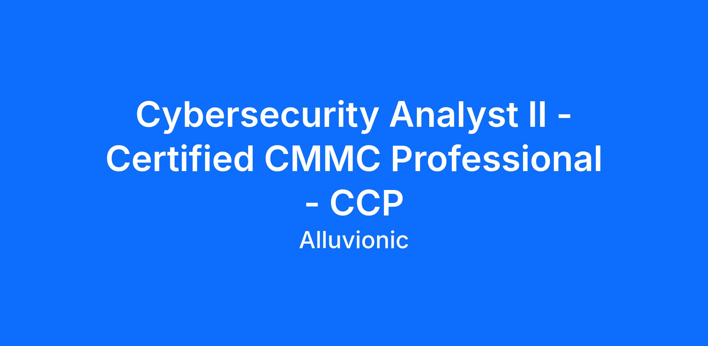 Alluvionic is seeking a Cybersecurity Analyst II with active Certified CMMC Professional (CCP) certification to support clients in achieving Cybersecurity Maturity Model Certification (CMMC) readiness. The ideal candidate will play a critical role in delivering gap analysis, developing and implementing remediation plans, and supporting process documentation and incident response strategies. This is a client-facing role that requires excellent communication and documentation skills.