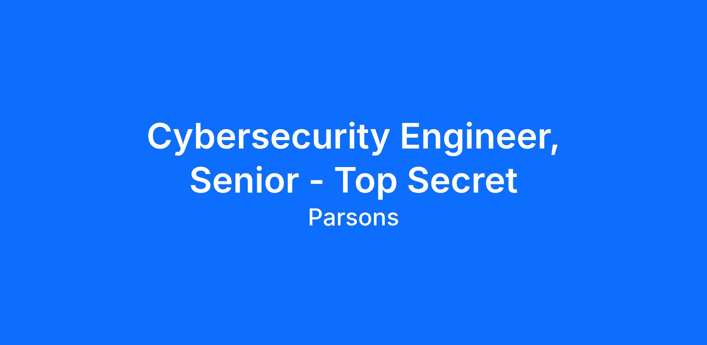 An active Top Secret security clearance is required for this position. This position is part of our Federal Solutions team. The Federal Solutions segment delivers resources to our US government customers that ensure the success of missions around the globe. Our intelligent employees drive the state of the art as they provide services and solutions in the areas of defense, security, intelligence, infrastructure, and environmental. We promote a culture of excellence and close-knit teams that take pride in delivering, protecting, and sustaining our nation's most critical assets, from Earth to cyberspace. Throughout the company, our people are anticipating what’s next to deliver the solutions our customers need now. Salary Range: $125,100.00 - $225,200.00 We value our employees and want our employees to take care of their overall wellbeing, which is why we offer best-in-class benefits such as medical, dental, vision, paid time off, 401(k), life insurance, flexible work schedules, and holidays to fit your busy lifestyle! This position will be posted for a minimum of 3 days and will continue to be posted for an average of 30 days until a qualified applicant is selected or the position has been cancelled. Parsons is an equal opportunity employer, and all qualified applicants will receive consideration for employment without regard to race, color, religion, sex, national origin, disability, veteran status or any other protected status. We truly invest and care about our employee’s wellbeing and provide endless growth opportunities as the sky is the limit, so aim for the stars! Imagine next and join the Parsons quest—APPLY TODAY!Parsons is aware of fraudulent recruitment practices. To learn more about recruitment fraud and how to report it, please refer to https://www.parsons.com/fraudulent-recruitment/.