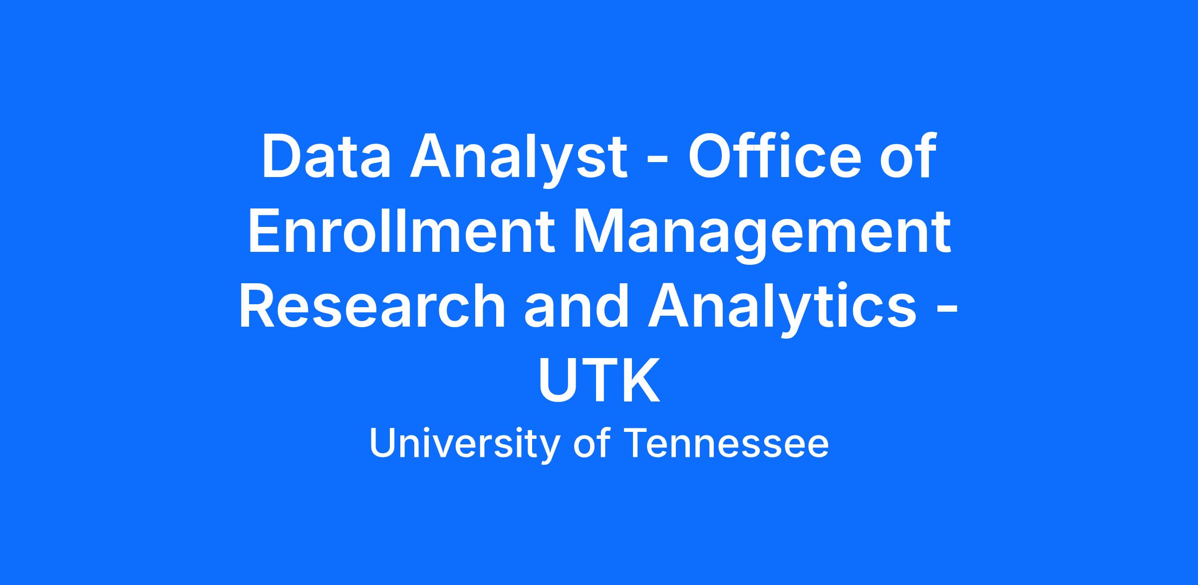 Data Analyst - Office of Enrollment Management Research and Analytics - UTK