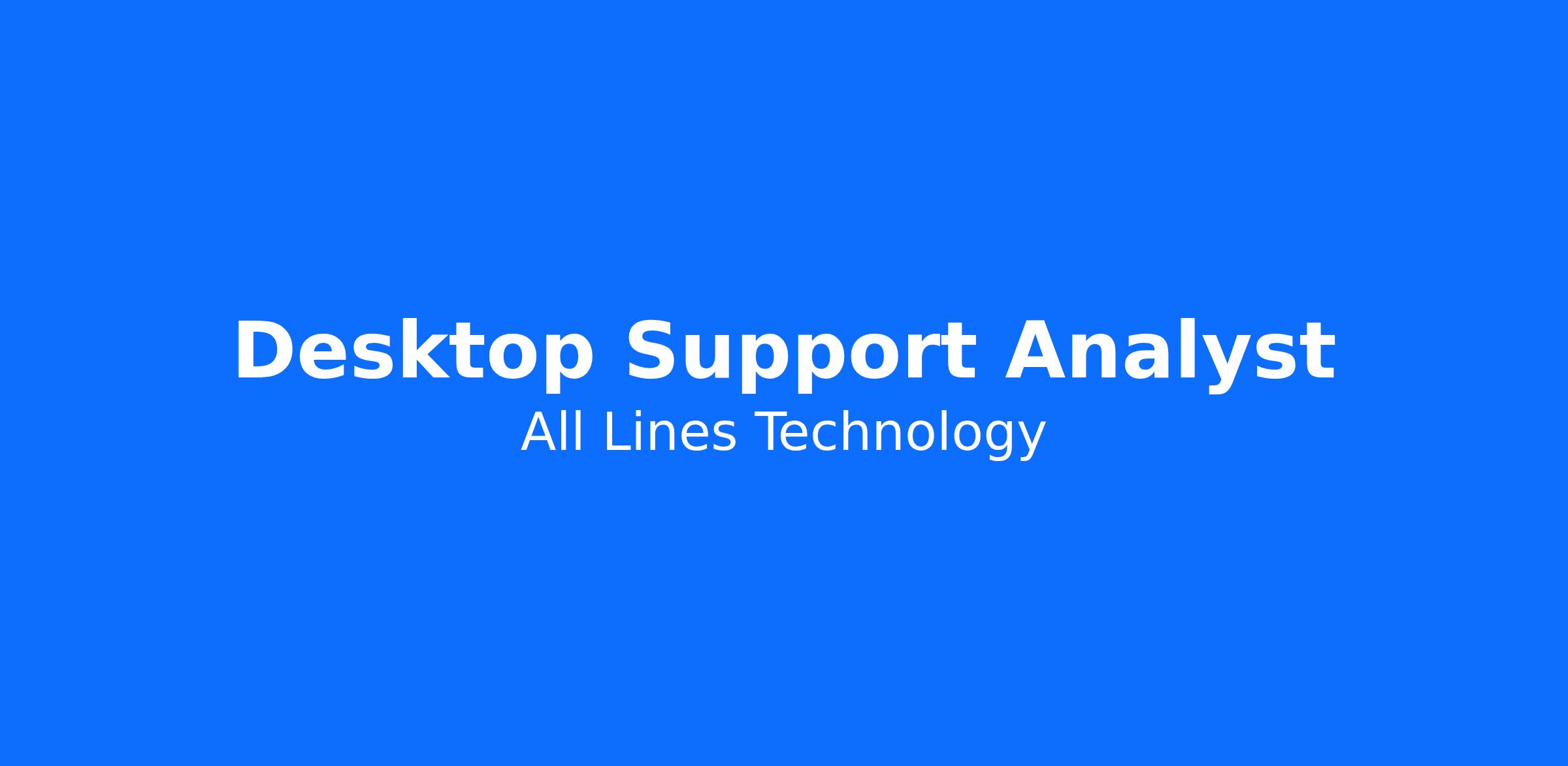 All Lines Technology has an immediate opening for a Desktop Support Analyst!! Support analysts are business, function, or process specialists and can be technology generalists or specialists. They demonstrates the ability to clearly express and share ideas and risks both verbally and written, in a positive and effective manner to their supervisor and team members. Effective in communicating status to the team. Demonstrates confidence and active listening to confirm understanding of the deliverable. They act within well-defined policies and procedures and be closely supervised. Normal focus is on existing products or processes. Support Analyst is seen as an individual contributor within their team. They are competent at managing their time, have interpersonal and collaboration skills. They do not manage other individuals and are typically closely managed. The decisions they make impact their team or specific area of support. As an individual contributor they are considered a member of a group or team focused on delivering business goals by follow structured processes and procedures to deliver results. They will work on small, isolated tasks where they are solely responsible for the work - their contribution is measured by their ability to complete the work assigned to them. The impact of their contribution is limited to the small tasks assigned and the success or failure to complete their work rarely impact others.