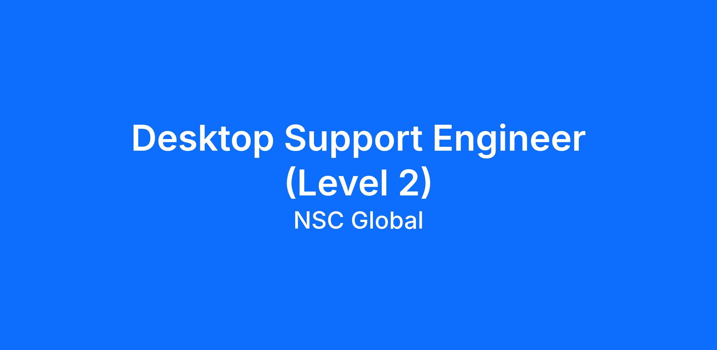 NSC Global is currently looking for a Desktop Support Engineer to join our growing company.