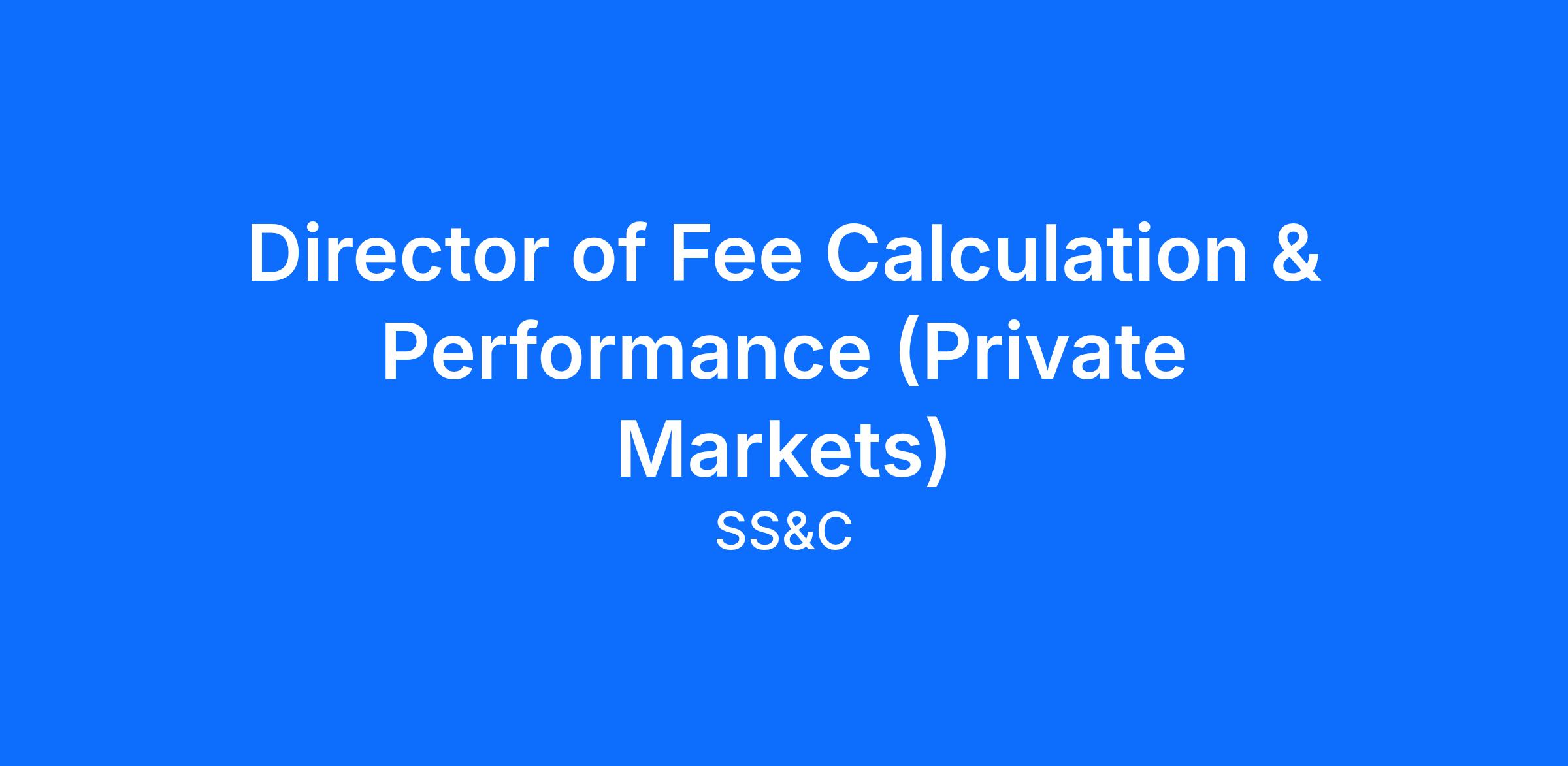 Director of Fee Calculation & Performance (Private Markets)
