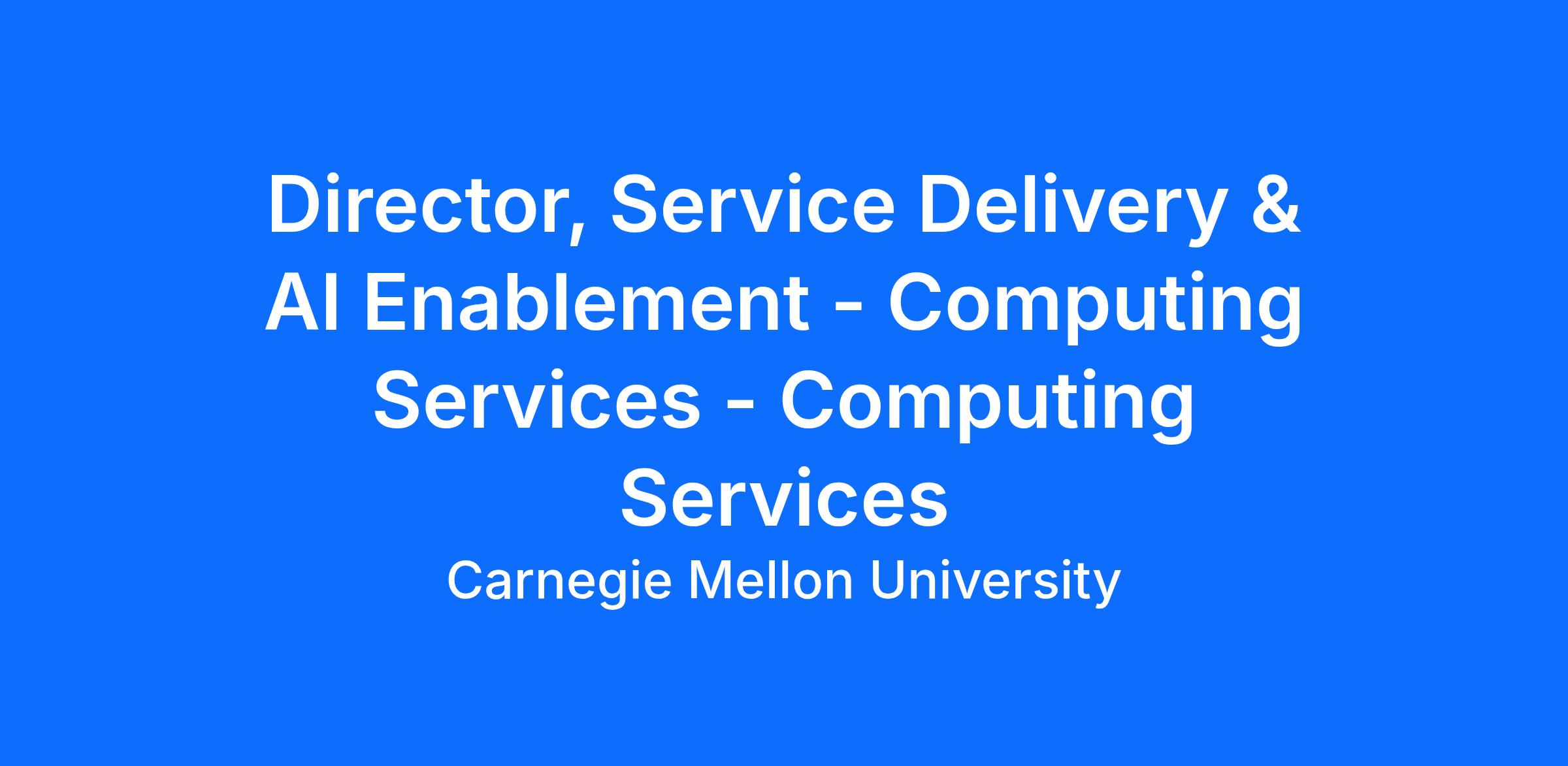 The Director of Service Delivery & AI Enablement provides strategic leadership for the design, governance, and continuous improvement of Client Services across Carnegie Mellon University. This role serves as the Service Owner for enterprise productivity services and AI-enabled service initiatives, ensuring services are reliable, scalable, and aligned with institutional priorities.
