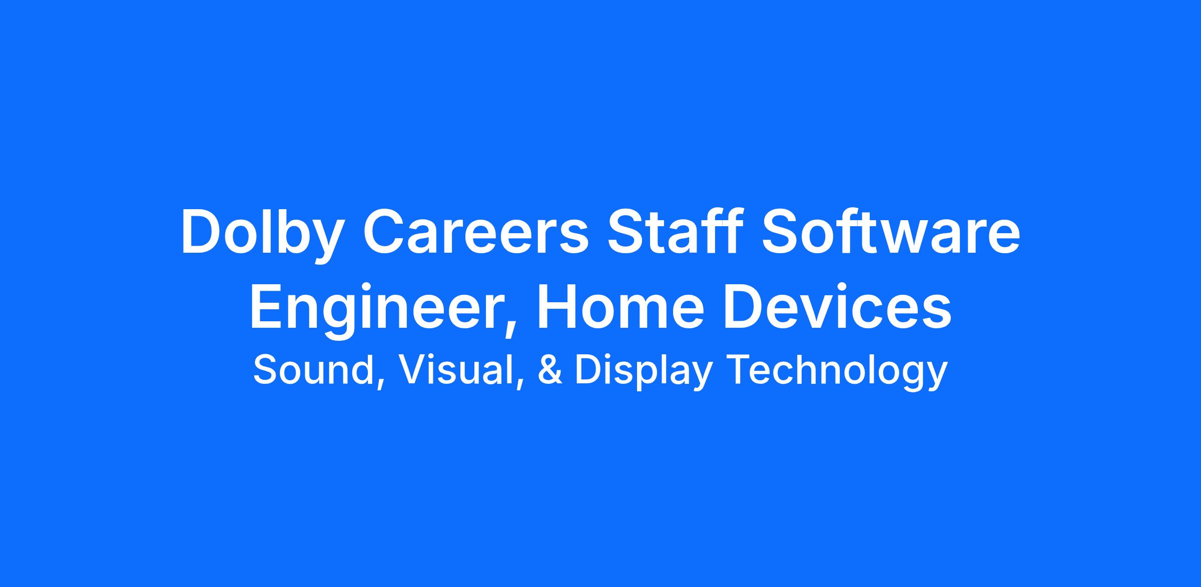 Join the leader in entertainment innovation and help us design the future. At Dolby, science meets art, and high tech means more than computer code. As a member of the Dolby team, you’ll see and hear the results of your work everywhere, from movie theaters to smartphones. We continue to revolutionize how people create, deliver, and enjoy entertainment worldwide. To do that, we need the absolute best talent. We’re big enough to give you all the resources you need, and small enough so you can make a real difference and earn recognition for your work. We offer a collegial culture, challenging projects, and excellent compensation and benefits, not to mention a Flex Work approach that is truly flexible to support where, when, and how you do your best work.