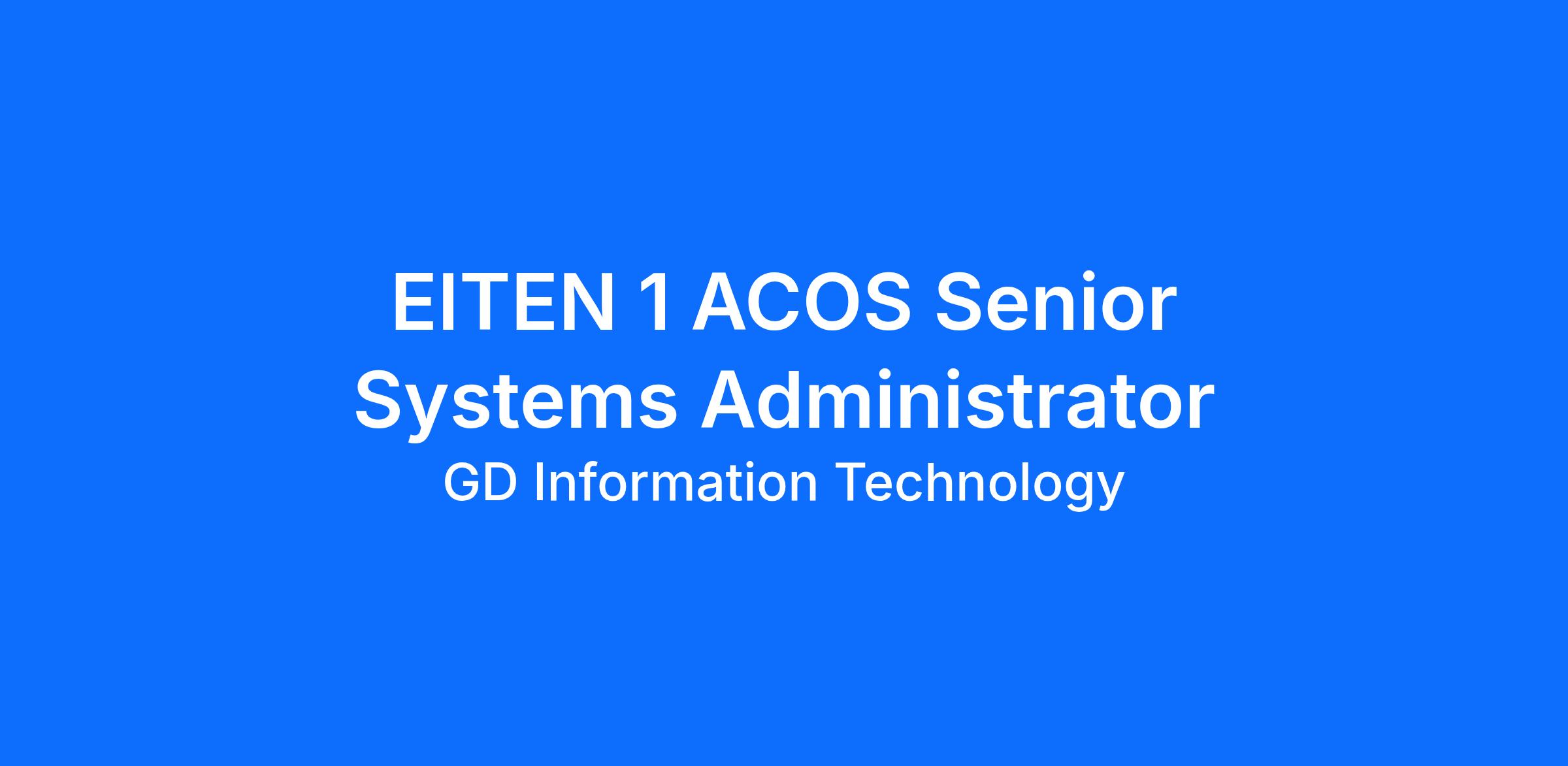Functional Role: EITEN 1 ACOS Senior Systems Administrator