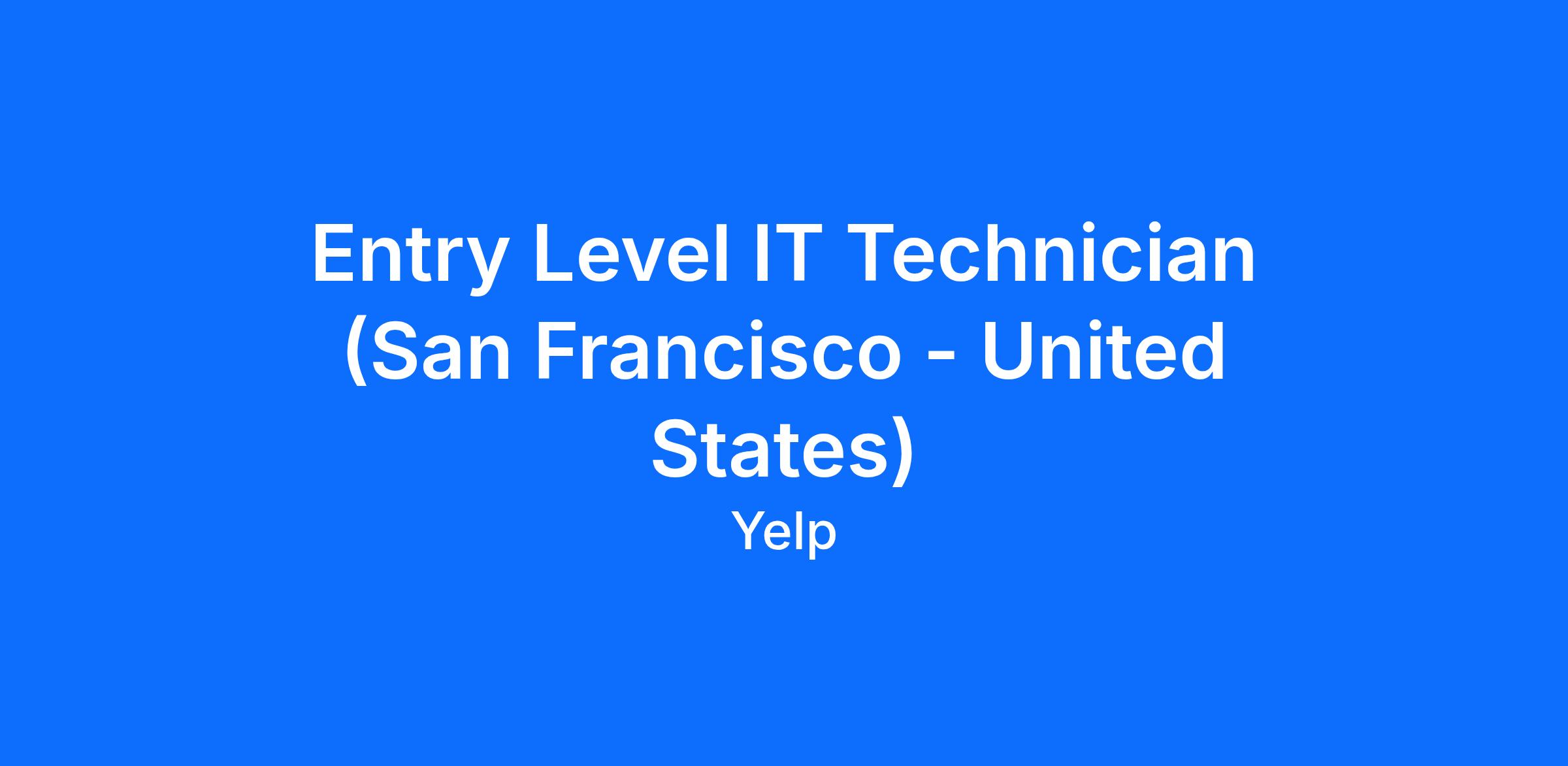 Entry Level IT Technician (San Francisco - United States)