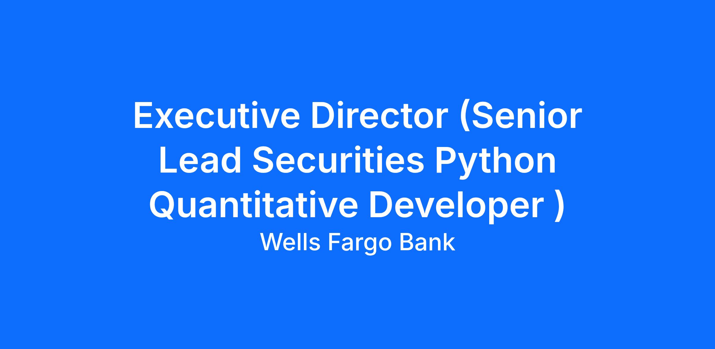 Wells Fargo is seeking a Quantitative Software Engineer, Executive Director (Senior Lead Securities Quantitative Analytics Specialist). A successful applicant will be a Python quantitative developer in the Investment Portfolio in Wells Fargo Securities, with a focus on Juniper Vasara ALM development.