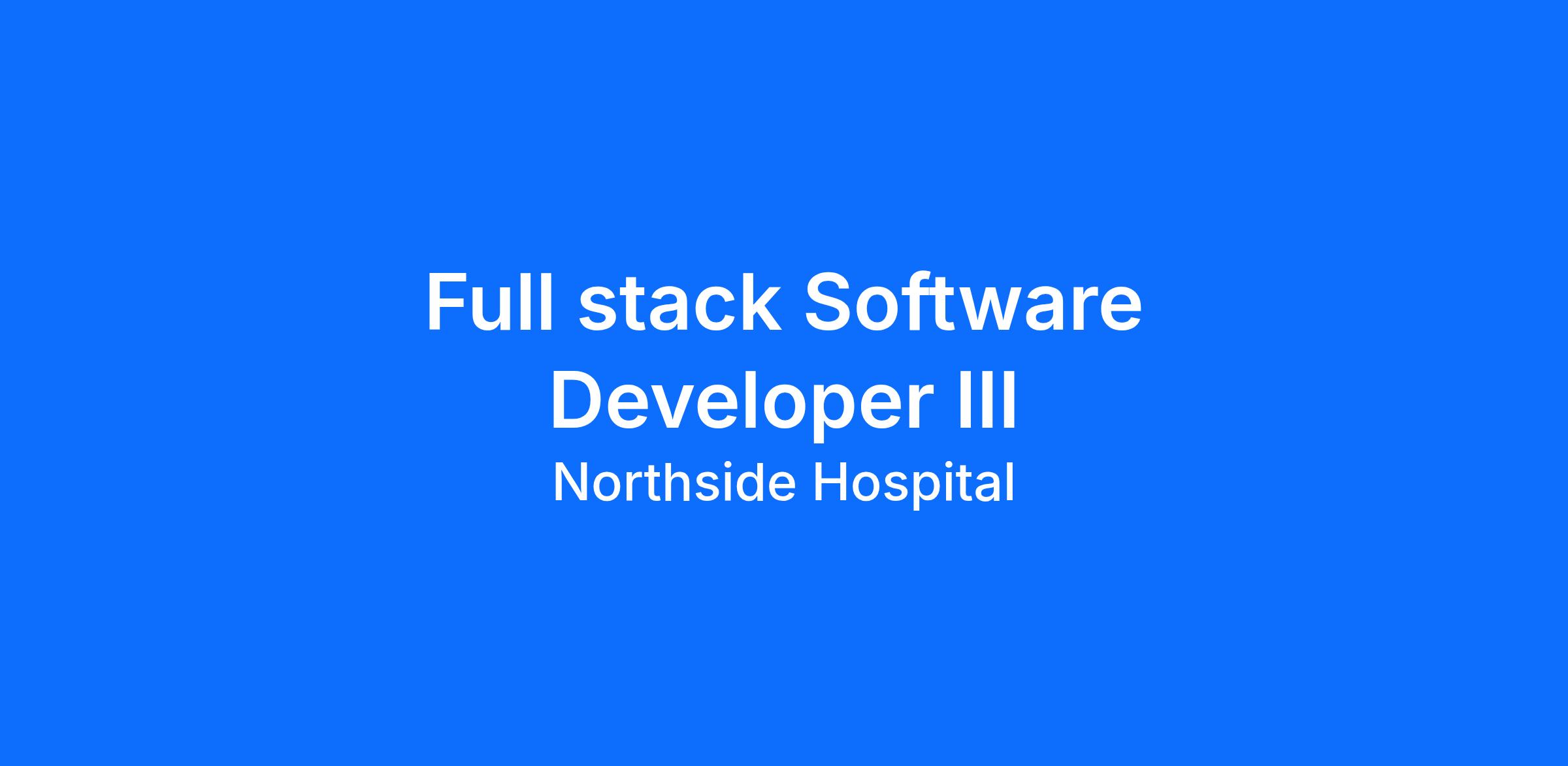 The Full-Stack Software Developer III for the Business Data & Technology Enablement (BDTE) Department is responsible for building software that assists in delivering business intelligence, analytics, and reporting using a variety of tools and programming disciplines. This position will build and maintain systems supporting Northside Hospital’s clinical and financial enterprise data repositories. Candidates must have excellent technical aptitude and an affinity for data and analysis.