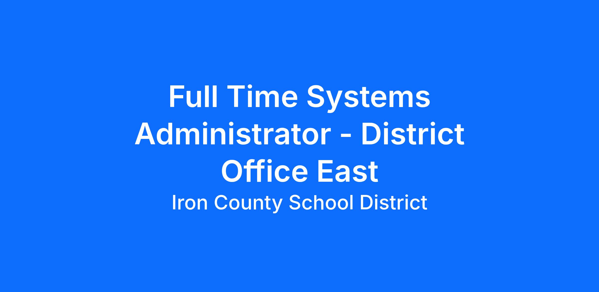 The Iron County School District is seeking a Full Time Systems Administrator.