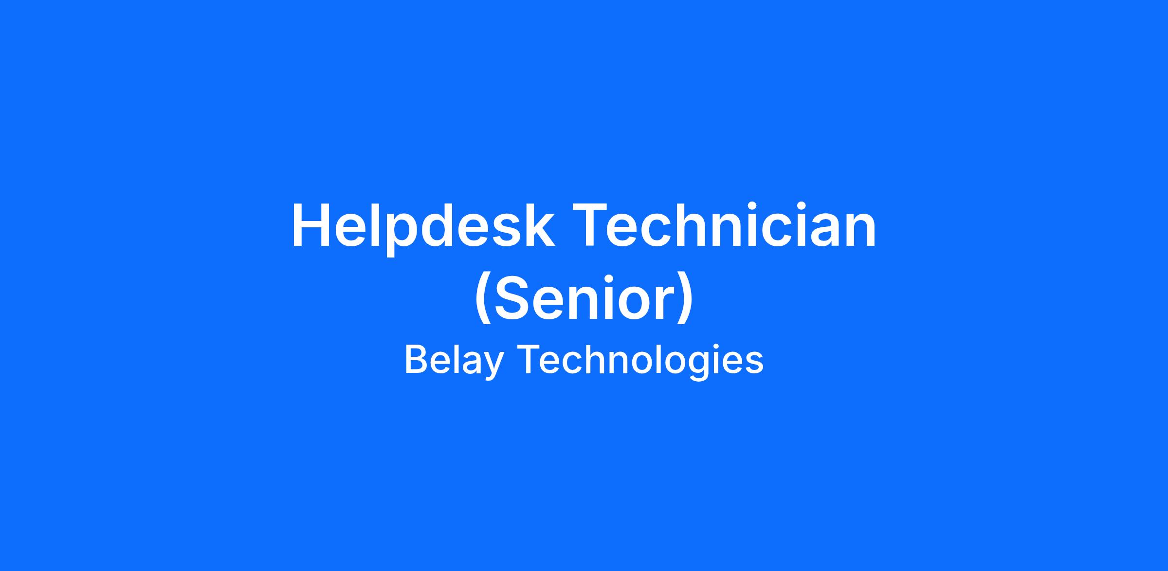 Belay Technologies is seeking a Helpdesk Technician to join our intel team. The Help Desk Support is primarily responsible for the administration of the help desk and help desk ticketing system including administration and maintenance of the IT asset register.