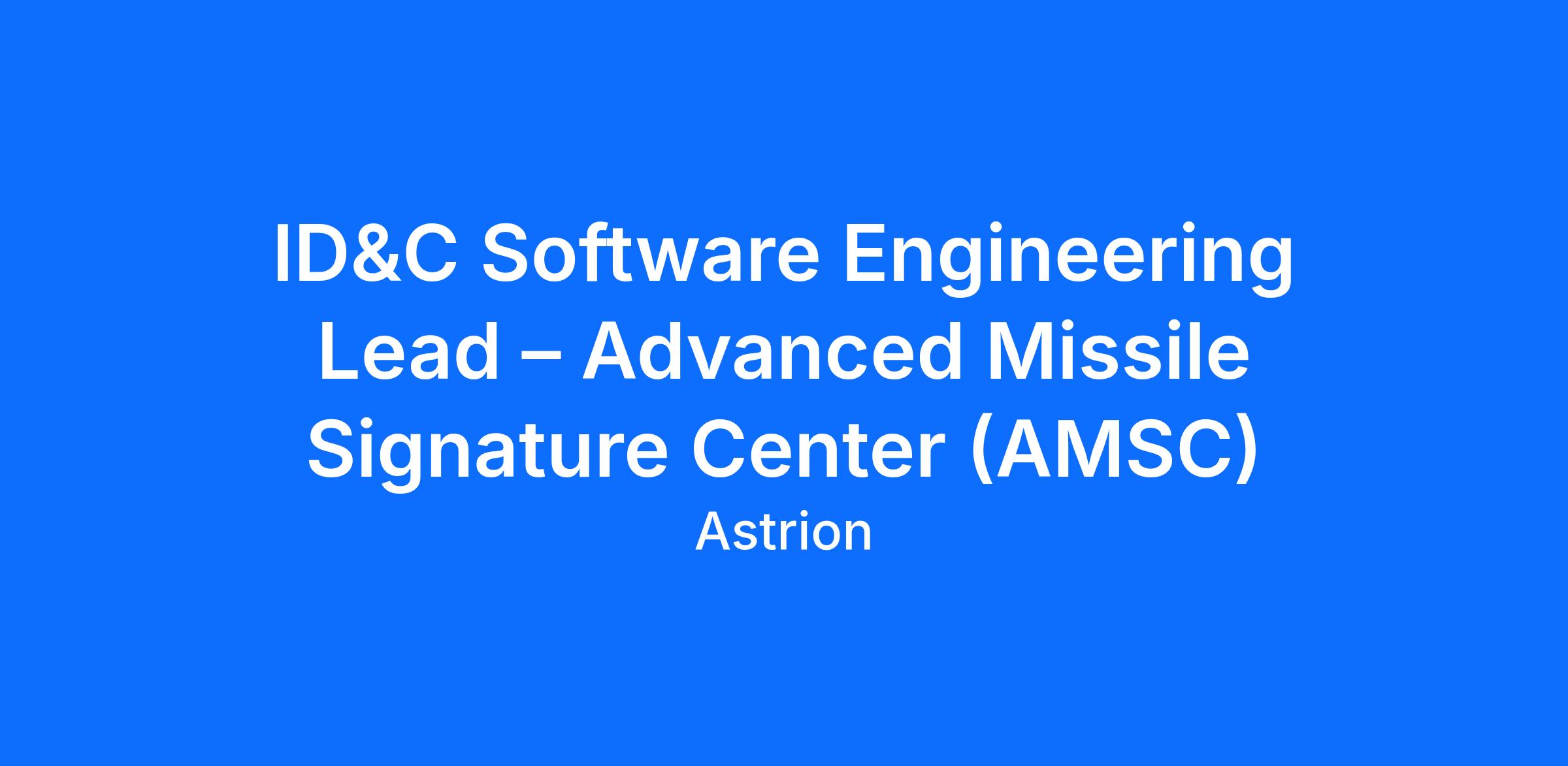 Job Title: ID&C Software Engineering Lead – Advanced Missile Signature Center (AMSC)