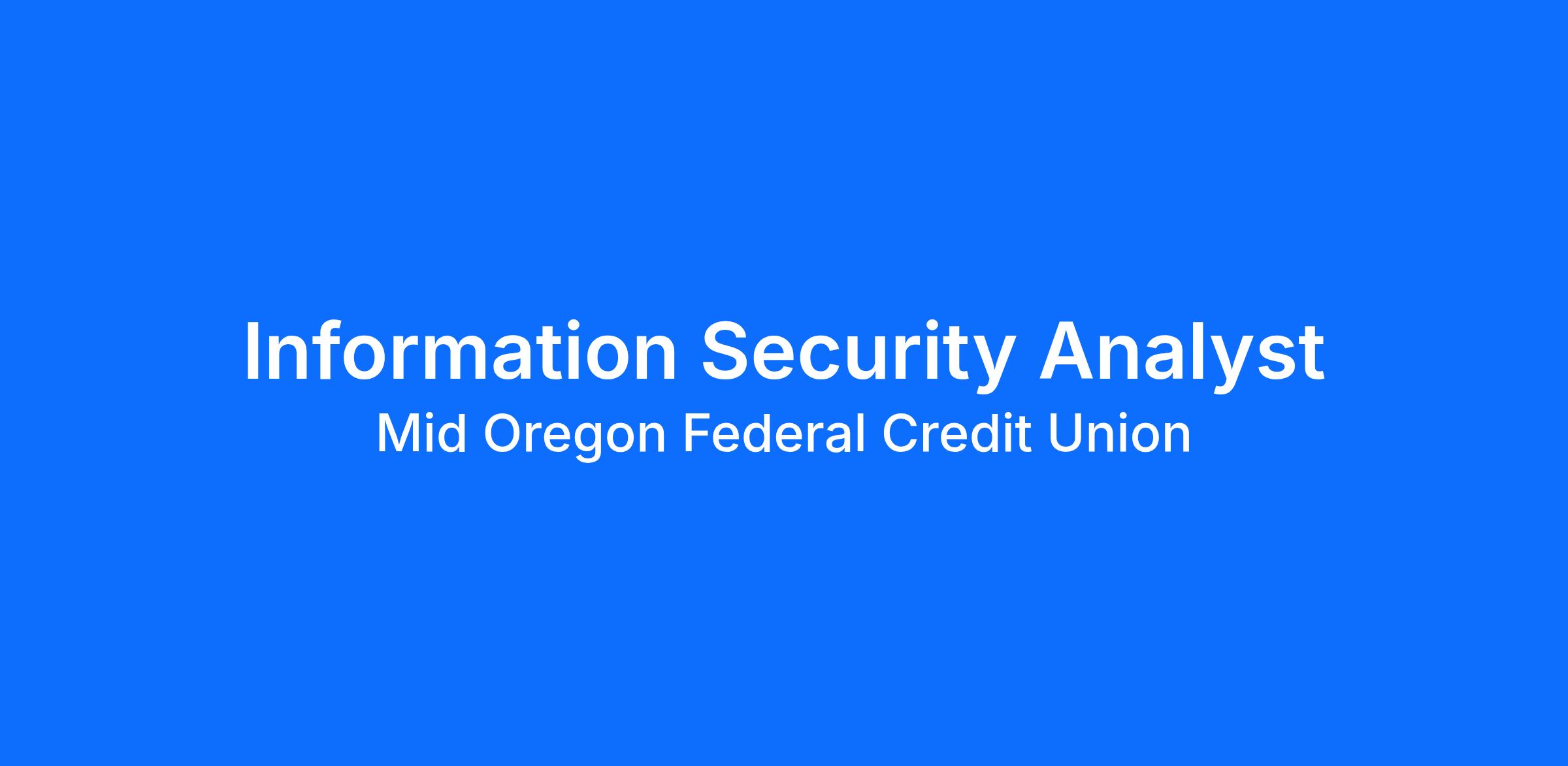 PRIMARY FUNCTION: Responsible for protecting the confidentiality, integrity, and availability of the credit union's information systems and member data. This role monitors security tools, investigates alerts, supports compliance with regulatory requirements (NCUA, FFIEC, GLBA), and assists in the development and implementation of security policies, controls, and best practices. The Information Security Analyst works closely with IT, third-party vendors, auditors, and business units to ensure a secure operating environment for both members and staff.