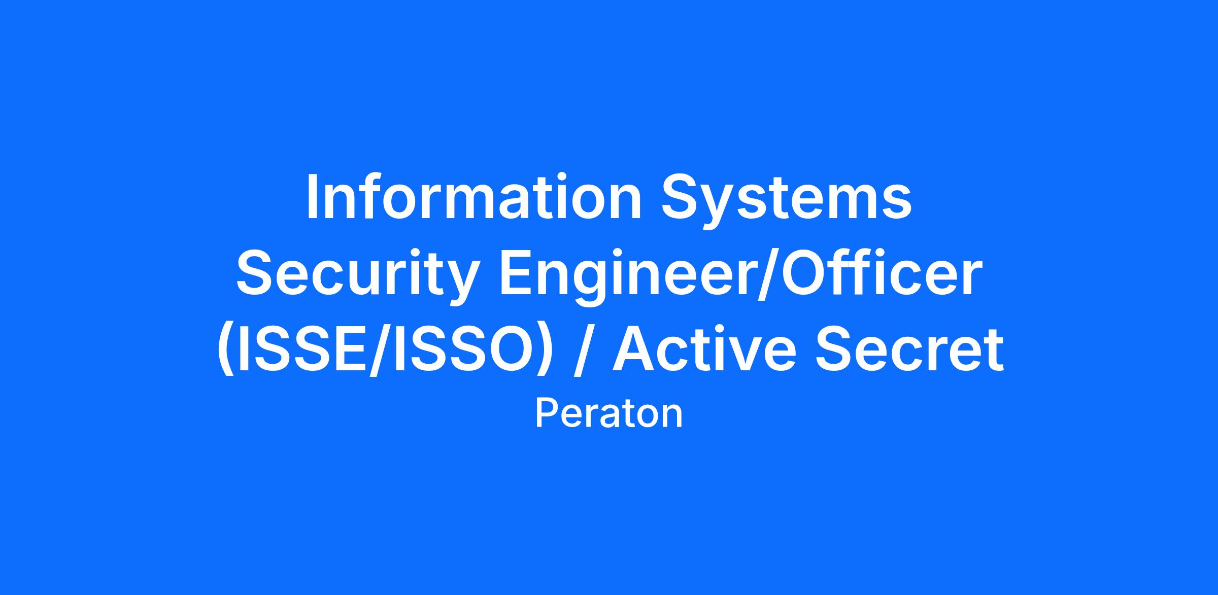 Peraton is seeking to hire an experienced Information Systems Security Engineer/Officer (ISSE/ISSO) – Dept. of Navy Support.