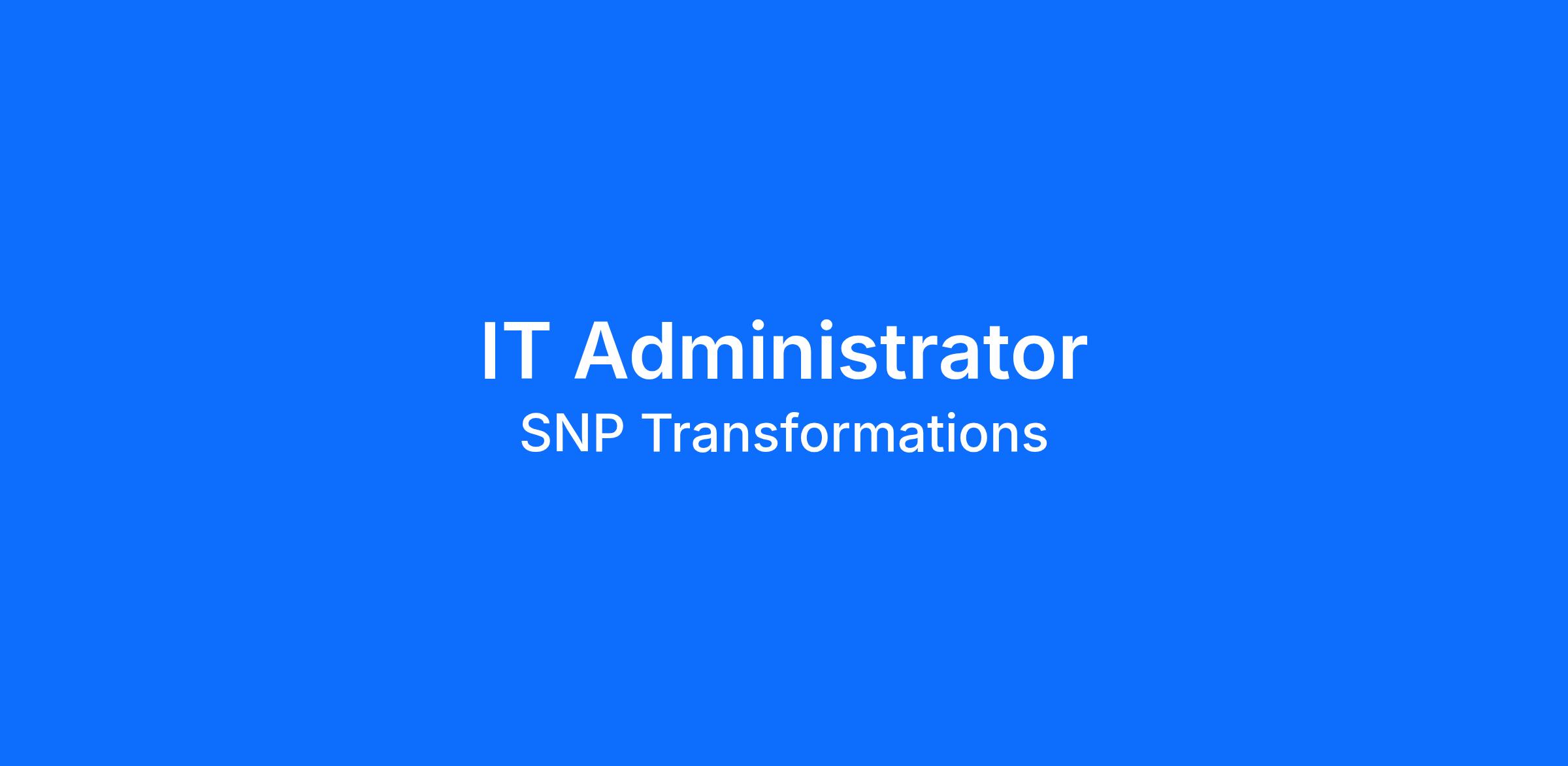 EEO Information SNP Transformations is an Equal Employment Opportunity Employer. All qualified applicants will receive consideration for employment without regard to race, color, religion, sex, national origin, sexual orientation, gender identity, disability and protected veterans’ status or any other characteristic protected by law.
