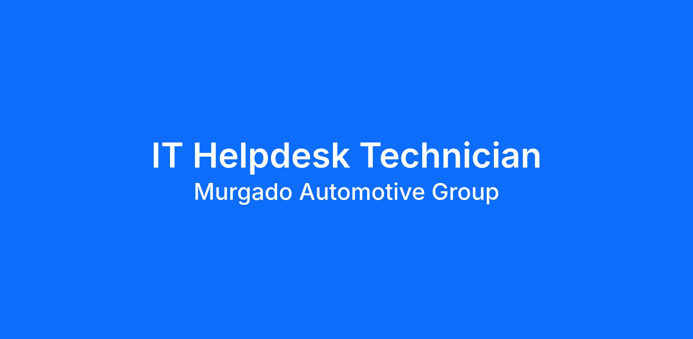 Murgado Automotive Group is seeking a motivated and skilled IT Helpdesk Technician to join our dynamic IT department. This role is critical to supporting our users at our Chicago locations in Illinois. You will be the first line of support, helping resolve technical issues and contributing to the overall efficiency and reliability of our IT systems.