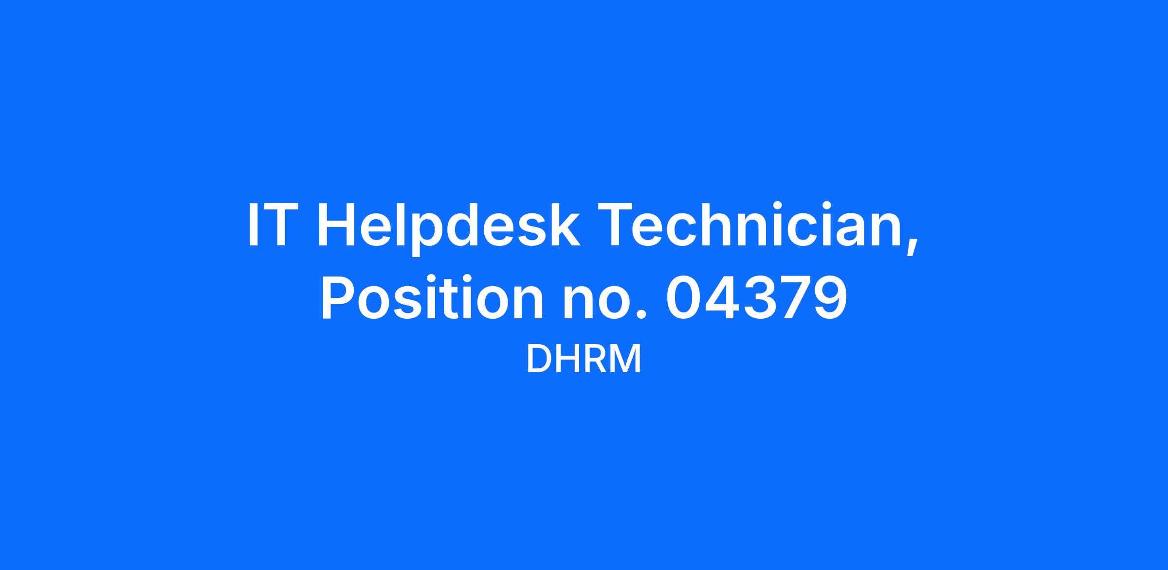 Title: IT Helpdesk Technician, Position no. 04379