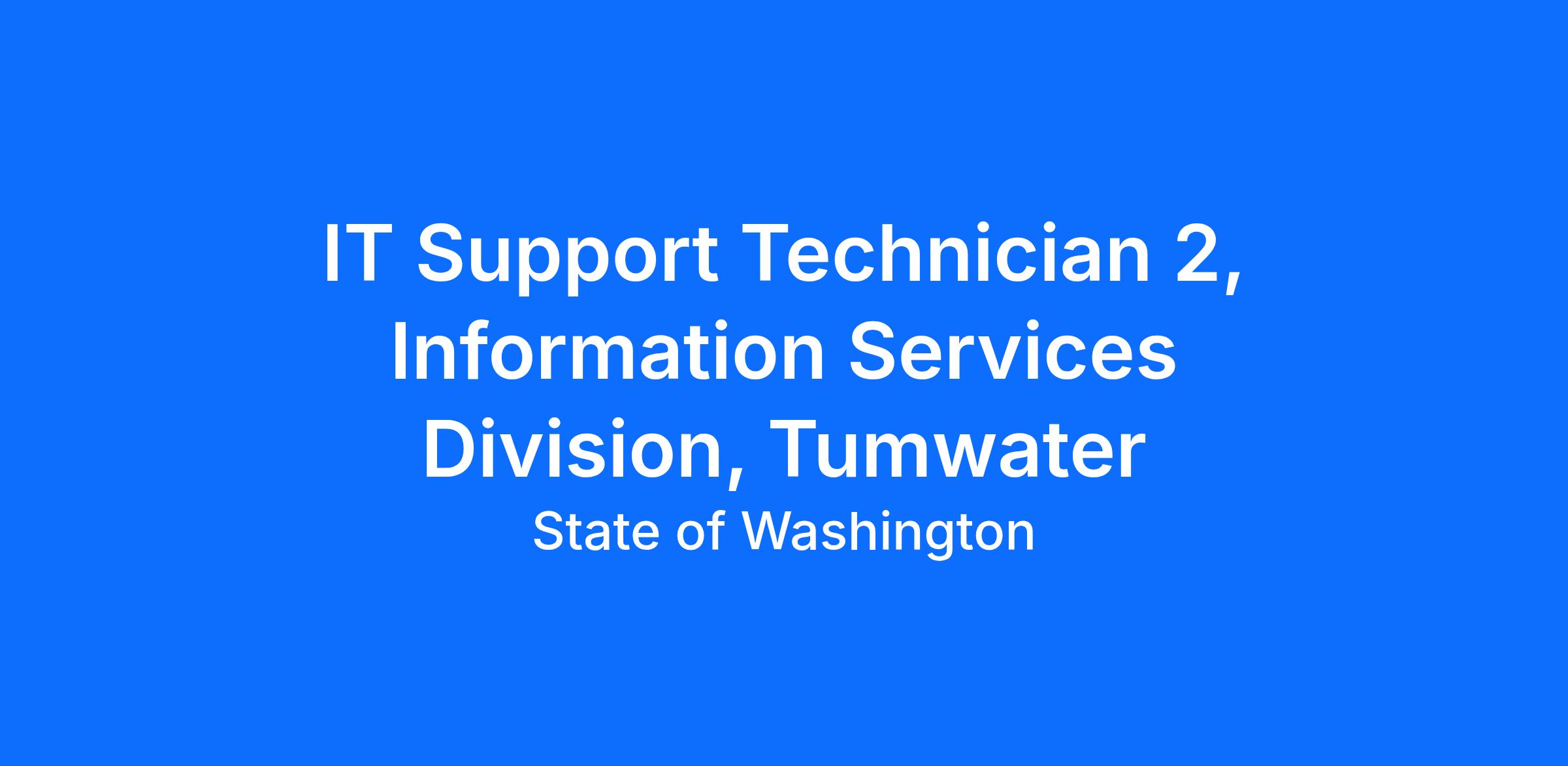 The Attorney General’s Office is recruiting for a permanent full time IT Support Technician 2 in the Information Services Division. This position is located in Tumwater, Washington, and is not union-represented.