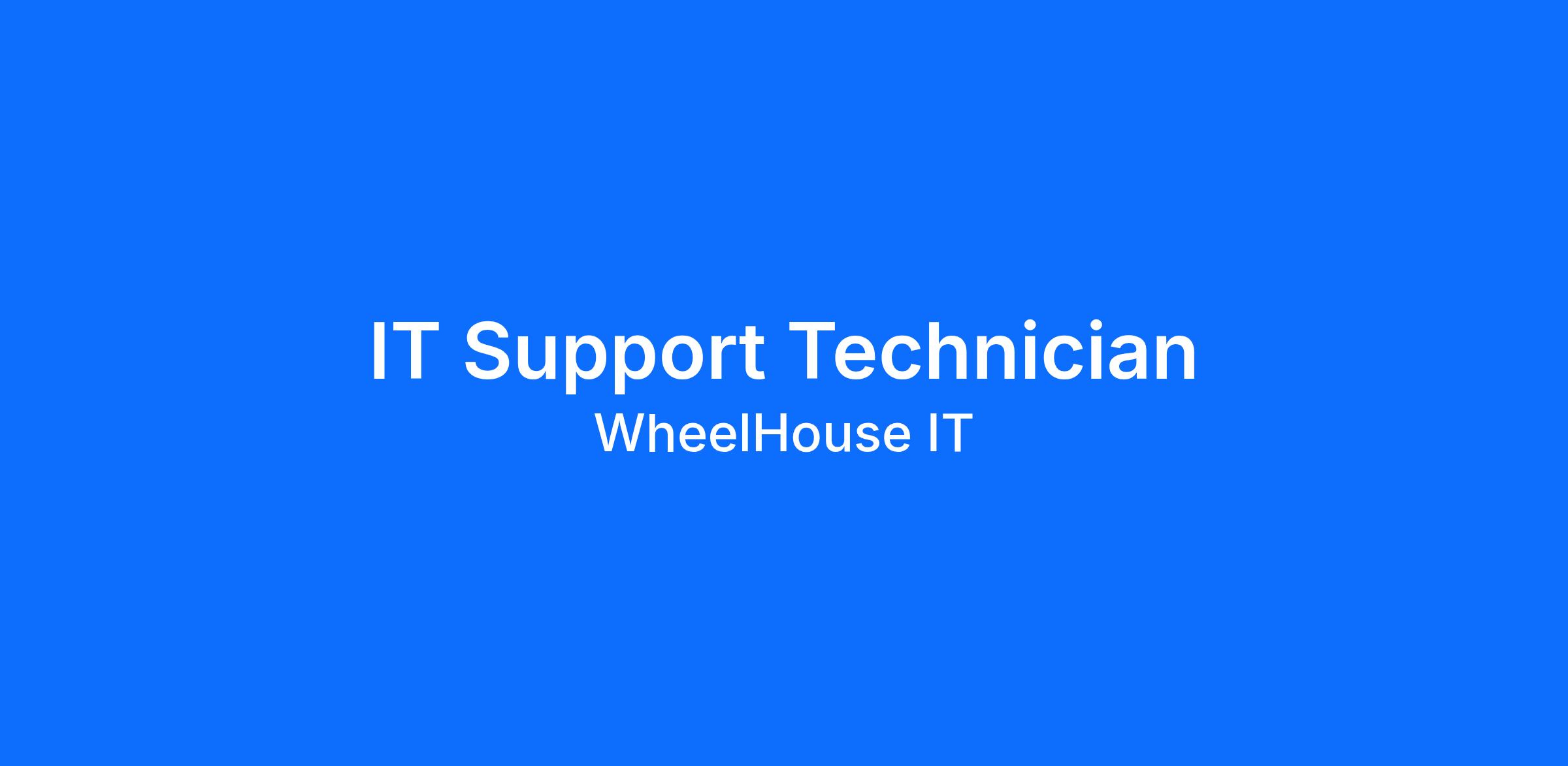 At WheelHouse IT, we believe in providing the best support to our clients and growing with the business. We are currently seeking a Support Technician to provide remote and on-site support for PCs, networking equipment, servers, and desktop software for small, medium-sized, and enterprise organizations. This position is located at our Fort Lauderdale headquarters, and the compensation range is $17-19/hour, depending on experience level.