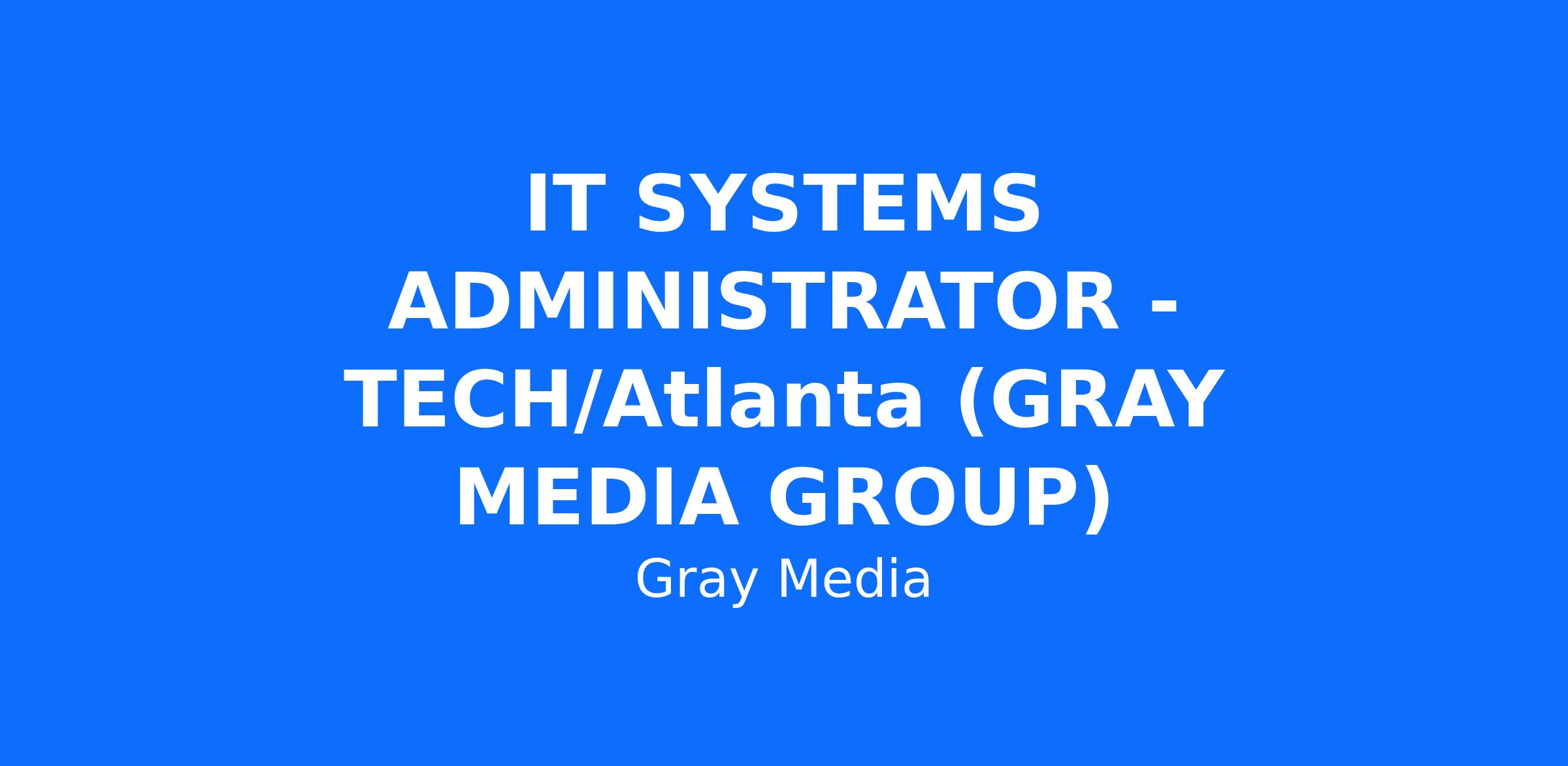 Gray Media is looking for a full-time IT Systems Administrator to support our corporate office in Atlanta, GA. This position is responsible for all areas of end-user support, including building and maintaining Windows and Mac desktops and laptops, managing servers, printers, backups, end-user applications, and all other related systems and equipment.