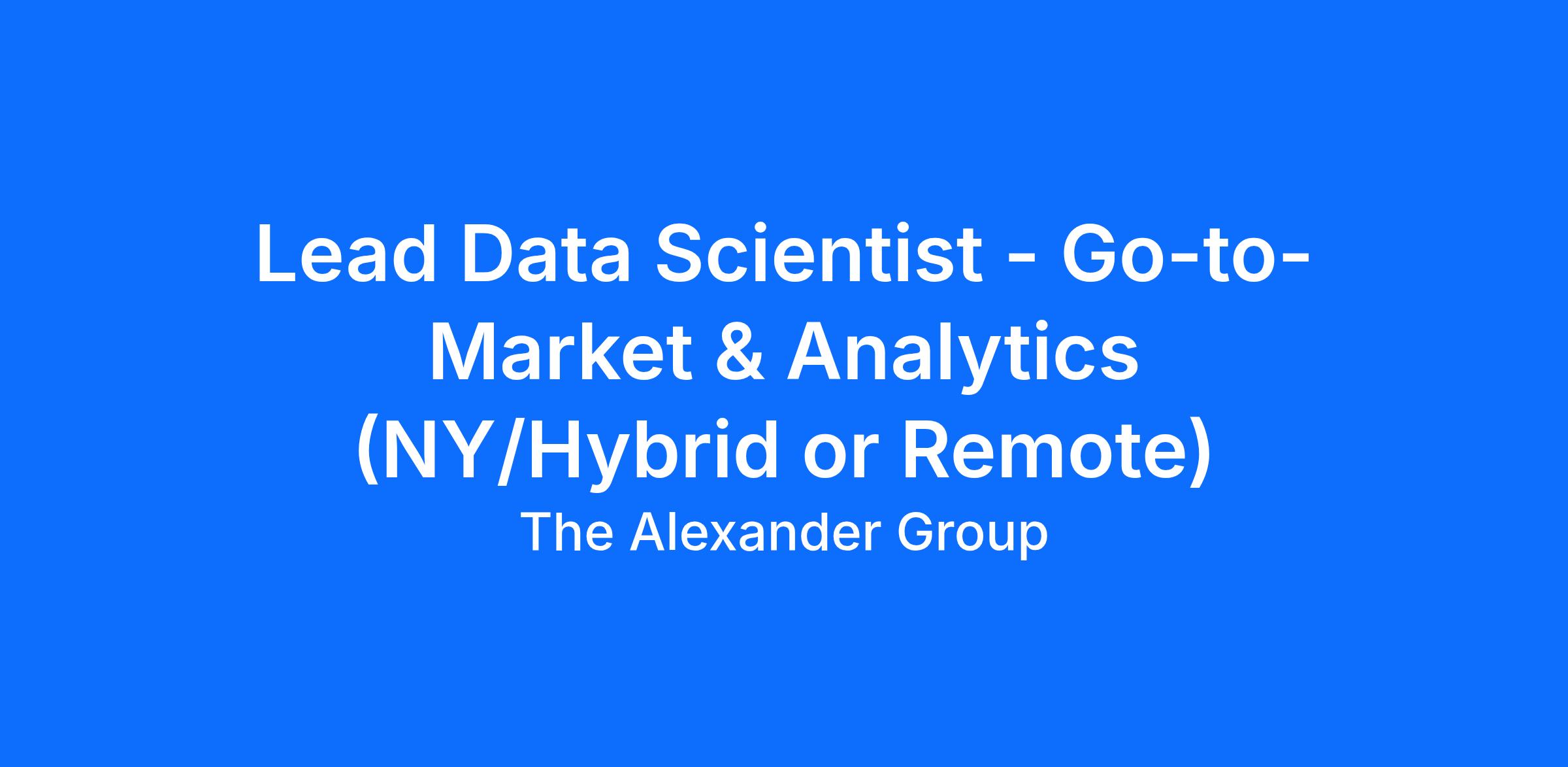 Lead Data Scientist - Go-to-Market & Analytics (NY/Hybrid or Remote)
