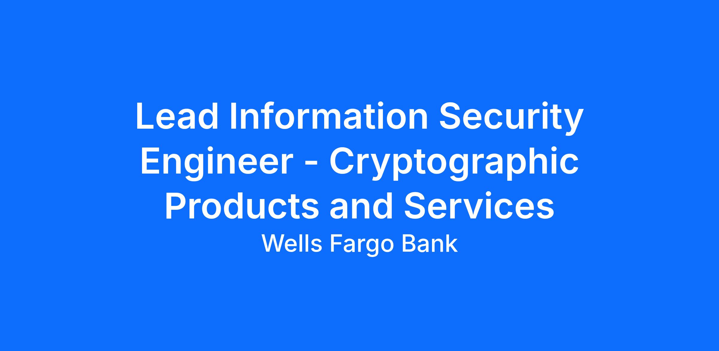 Wells Fargo is seeking a motivated Lead Information Security Engineer to join an exciting, fast paced team working on cutting edge encryption, tokenization and key management technologies that are leveraged to protect information companywide. This role will provide technical leadership, and be an individual contributor, to teams that design, deploy, and operationally maintain cryptographic products and services including Hardware Security Modules (HSMs) and security appliances.