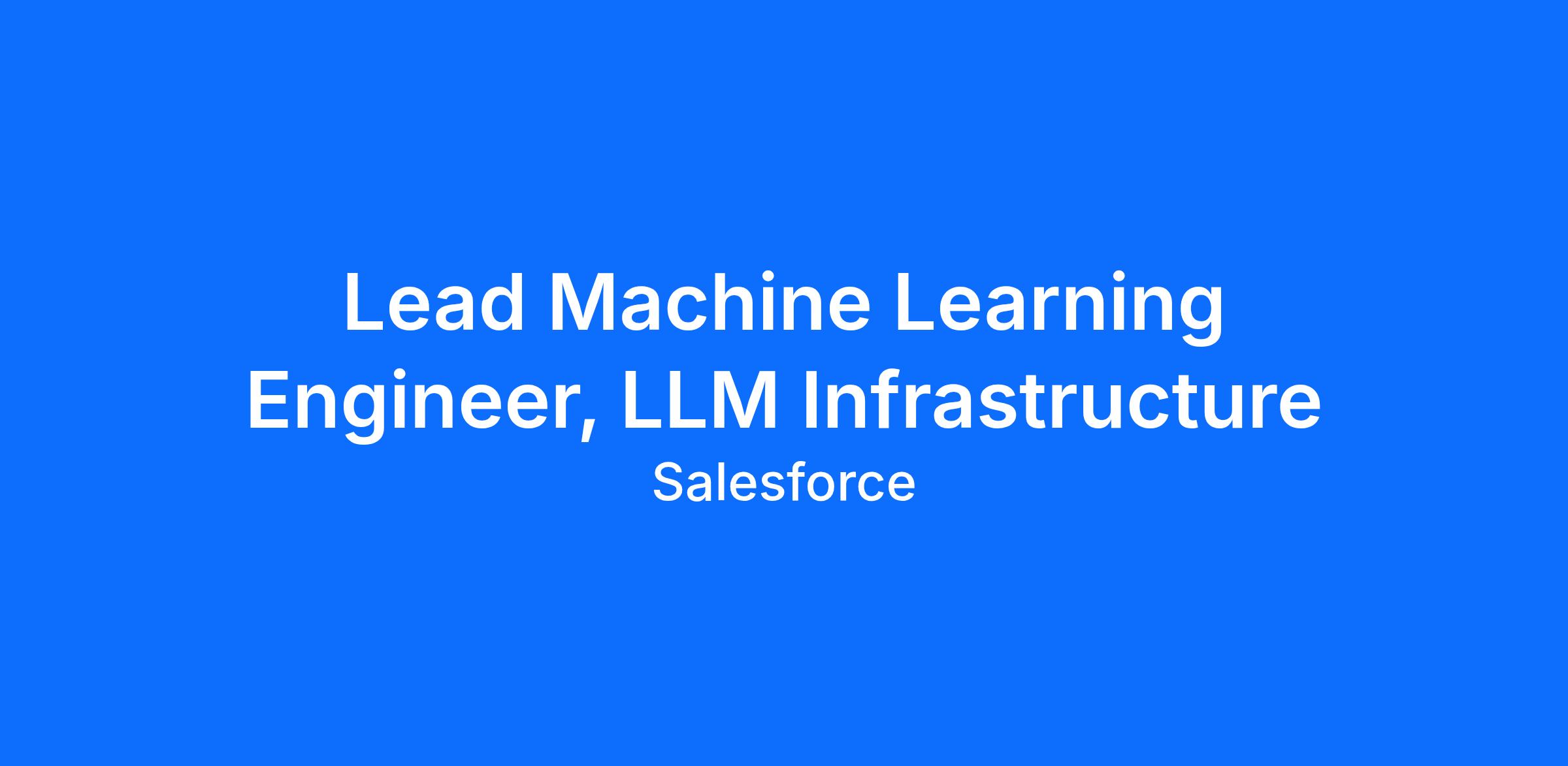 We are seeking a Lead ML Engineer, LLM Post-Training Infrastructure to join the Salesforce AI Research Incubation Team. In this role, you will own the infrastructure and engineering systems that support LLM post-training, large-scale evaluation, and model deployment. You will build scalable, reliable