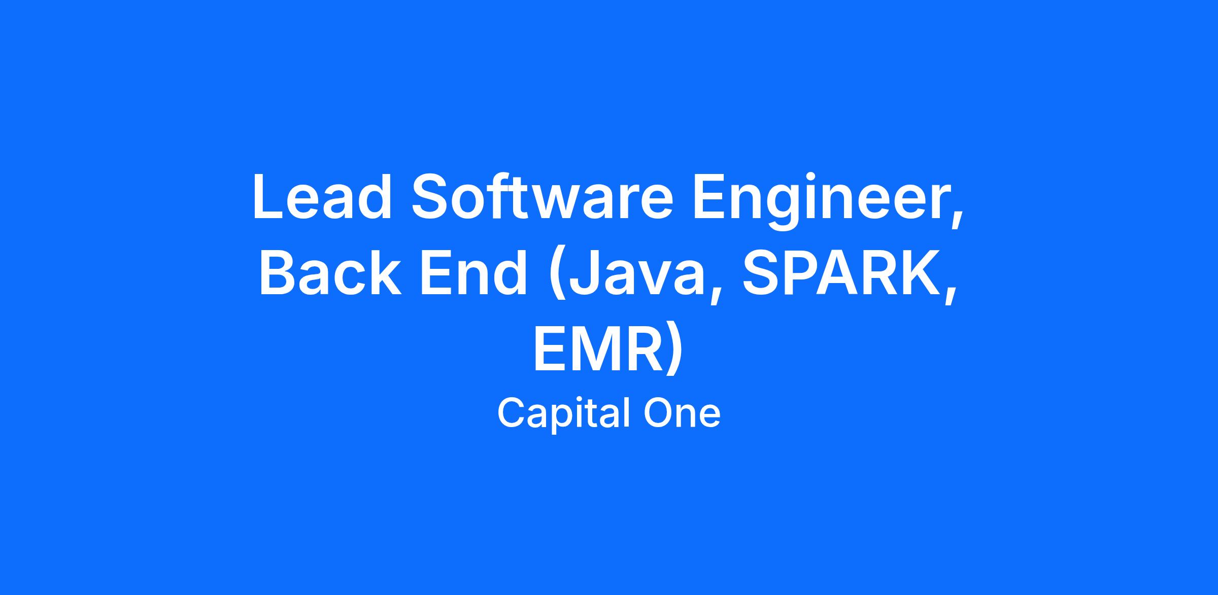 Do you love building and pioneering in the technology space? Do you enjoy solving complex business problems in a fast-paced, collaborative, inclusive, and iterative delivery environment? At Capital One, you'll be part of a big group of makers, breakers, doers and disruptors, who love to solve real problems and meet real customer needs. We are seeking Back End Software Engineers who are passionate about marrying data with emerging technologies. As a Capital One Software Engineer, you’ll have the opportunity to be on the forefront of driving a major transformation within Capital One.