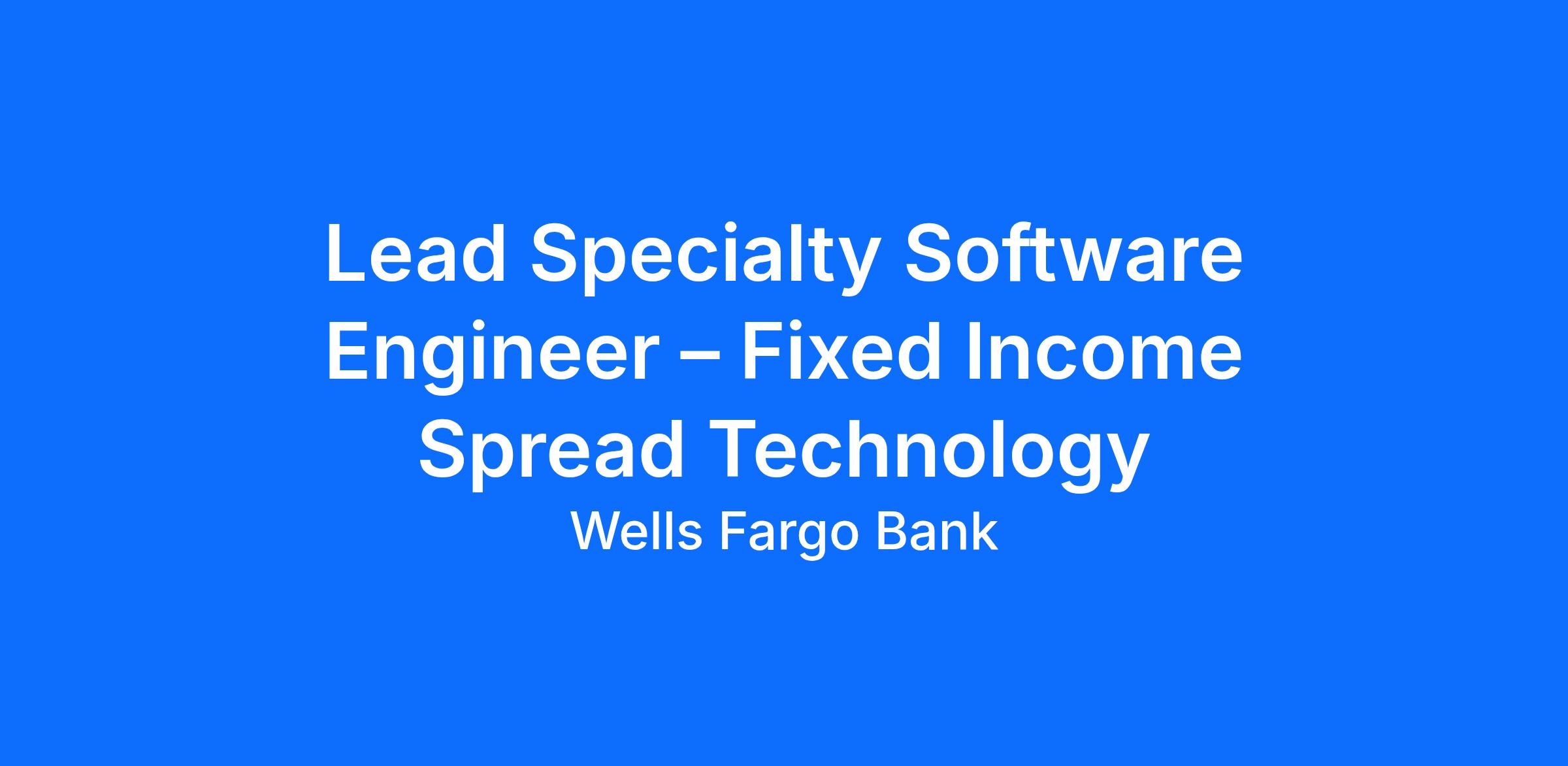 Wells Fargo is seeking a Lead Specialty Software Engineer within Corporate & Investment Banking (CIB) Capital Markets, Fixed Income Spread Technology. This is a hands-on technical leadership role focused on building and evolving low-latency, high-throughput platforms that power pricing, risk, P&L, and electronic trading workflows across Credit, Municipal, and Structured Products desks.