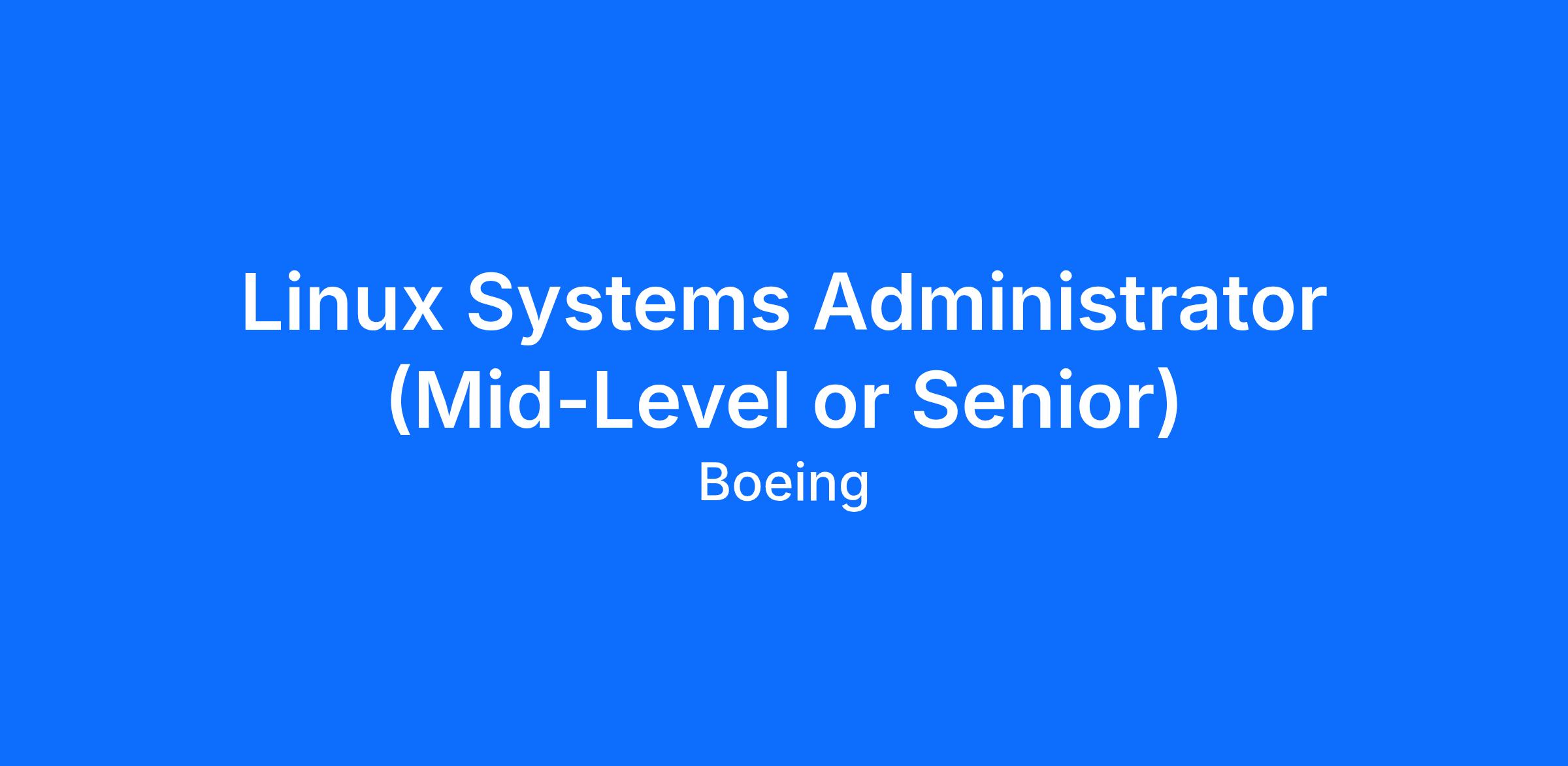 The Boeing CompanyThe Boeing Company’s Specialized Infrastructure Operations Organization is currently seeking a Linux Systems Administrator (Mid-Level or Senior) to join the team in Berkeley, MO.