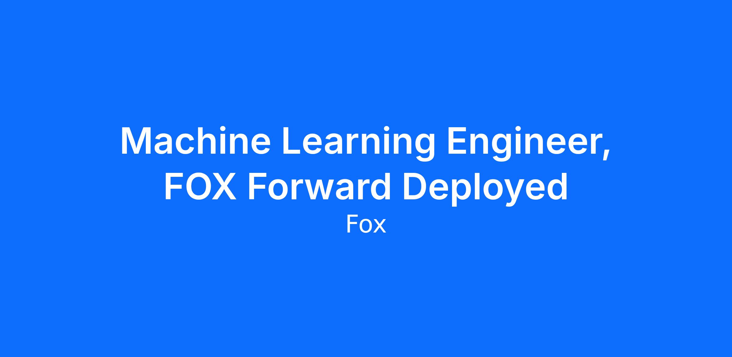Fox CorporationUnder the FOX banner, we produce and distribute content through some of the world’s leading and most valued brands, including: FOX News Media, FOX Sports, FOX Entertainment, FOX Television Stations and Tubi Media Group. We empower a diverse range of creators to imagine and develop culturally significant content, while building an organization that thrives on creative ideas, operational expertise and strategic thinking.FOX Forward Deployed is an 12-month rotational program that embeds early-career machine learning engineers inside the teams powering FOX’s biggest, most-watched moments.