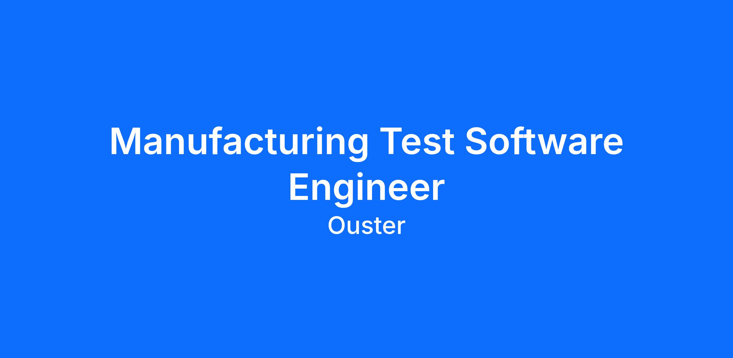 At Ouster, we build sensors and tools for engineers, roboticists, and researchers, so they can make the world safer and more efficient. We've transformed LIDAR from an analog device with thousands of components to an elegant digital device powered by one chip-scale laser array and one CMOS sensor. The result is a full range of high-resolution LIDAR sensors that deliver superior imaging at a dramatically lower price. Our advanced sensor hardware and vision algorithms are used in autonomous cars, robotics, industrial, and smart infrastructure applications (among many others). If you’re motivated by solving big problems, we’re hiring key roles across the company and need your help!Our team is looking for a passionate, self-motivated Manufacturing Test Software Engineer with strong in-depth knowledge of test software and product engineering. In this position, you will be a member of the Test team at Ouster’s R&D / Pilot facility in San Francisco, California. You will work closely with R&D and Operations to support LiDAR products by using your skills and experience to identify and facilitate the improvement of manufacturing tests and processes.