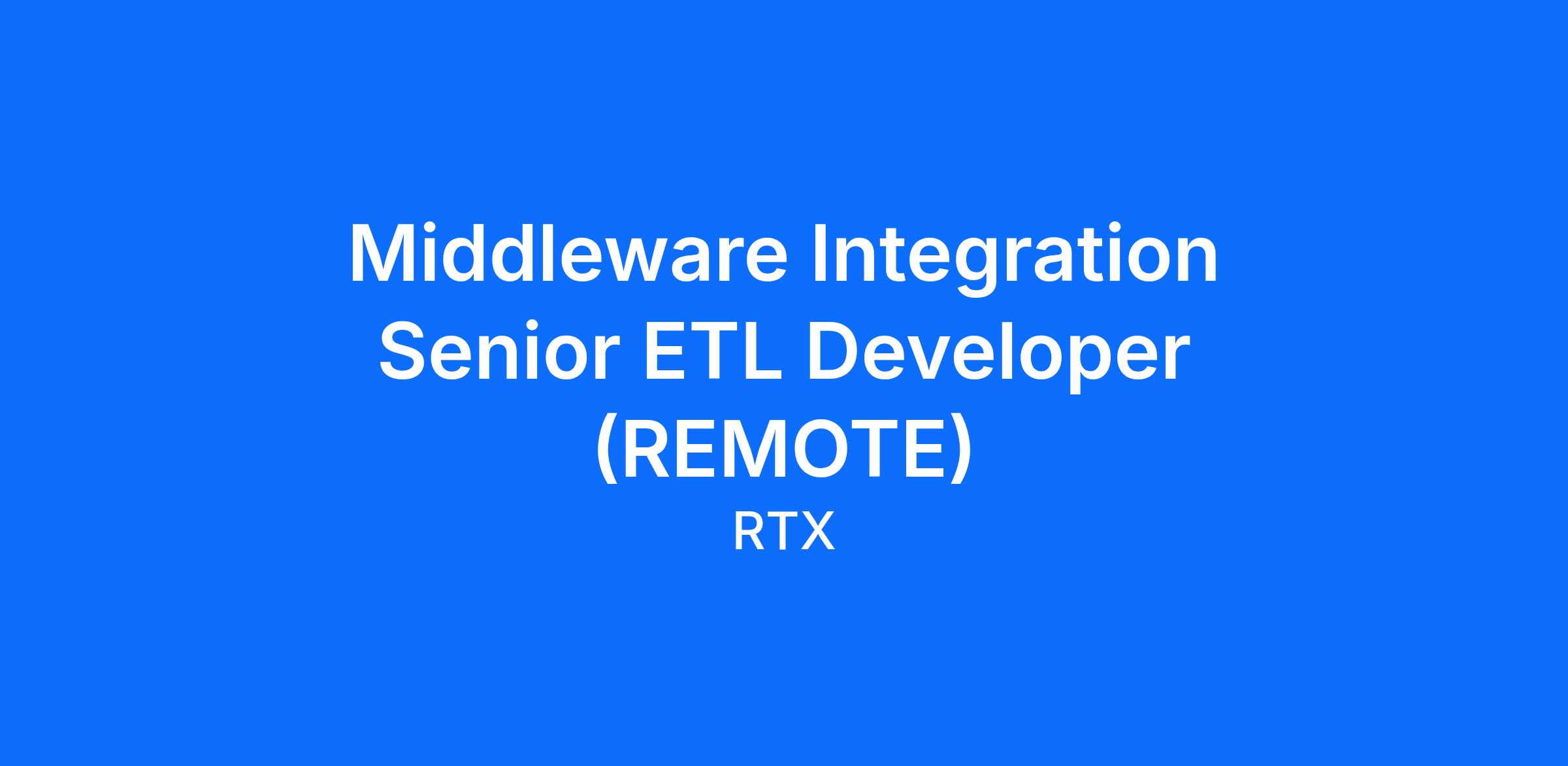 RTX has an opening for a Middleware Integration Senior ETL Developer (Manager, Business Systems and Transformation) position.