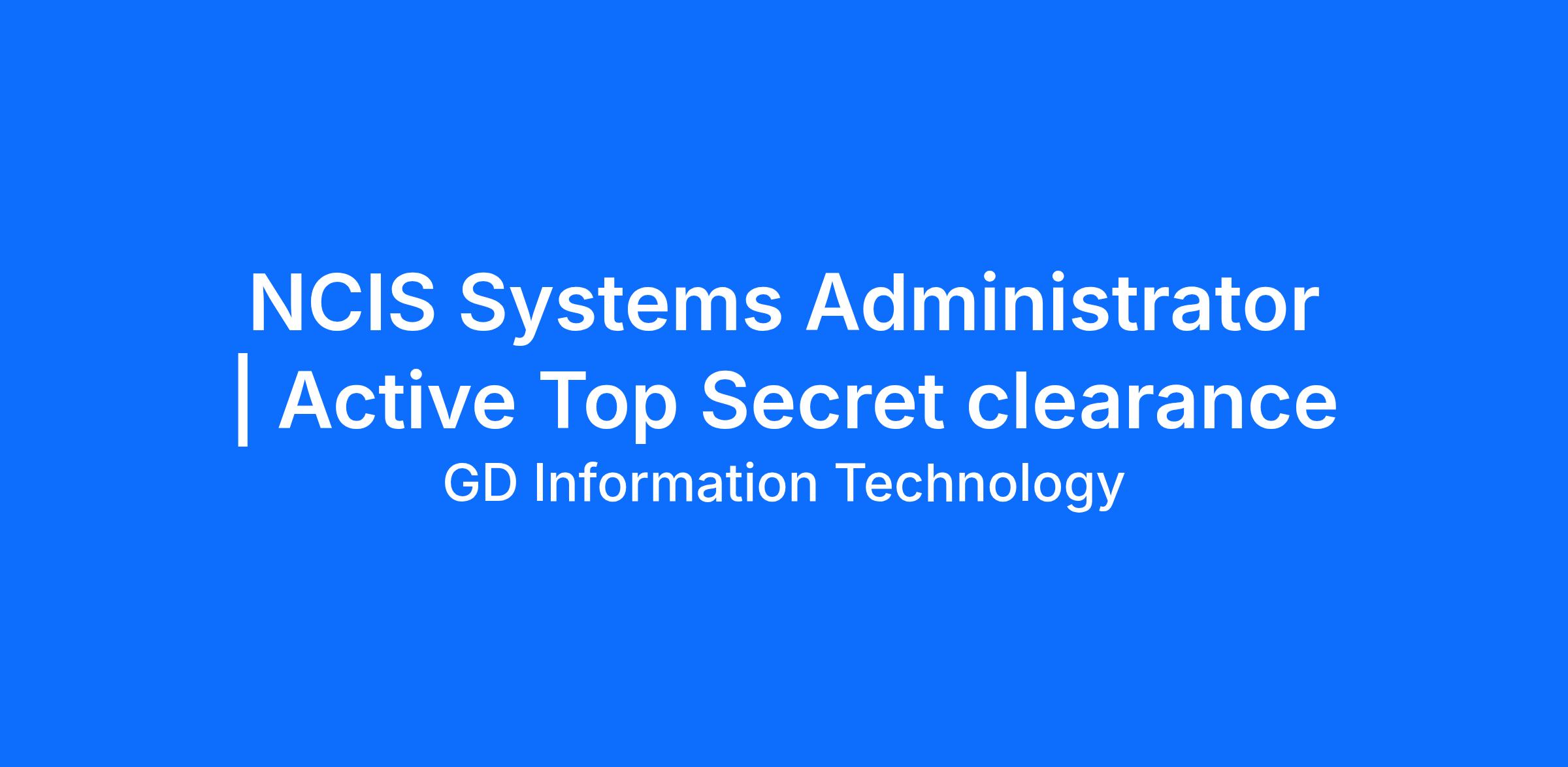 NCIS Systems Administrator | Active Top Secret clearance
