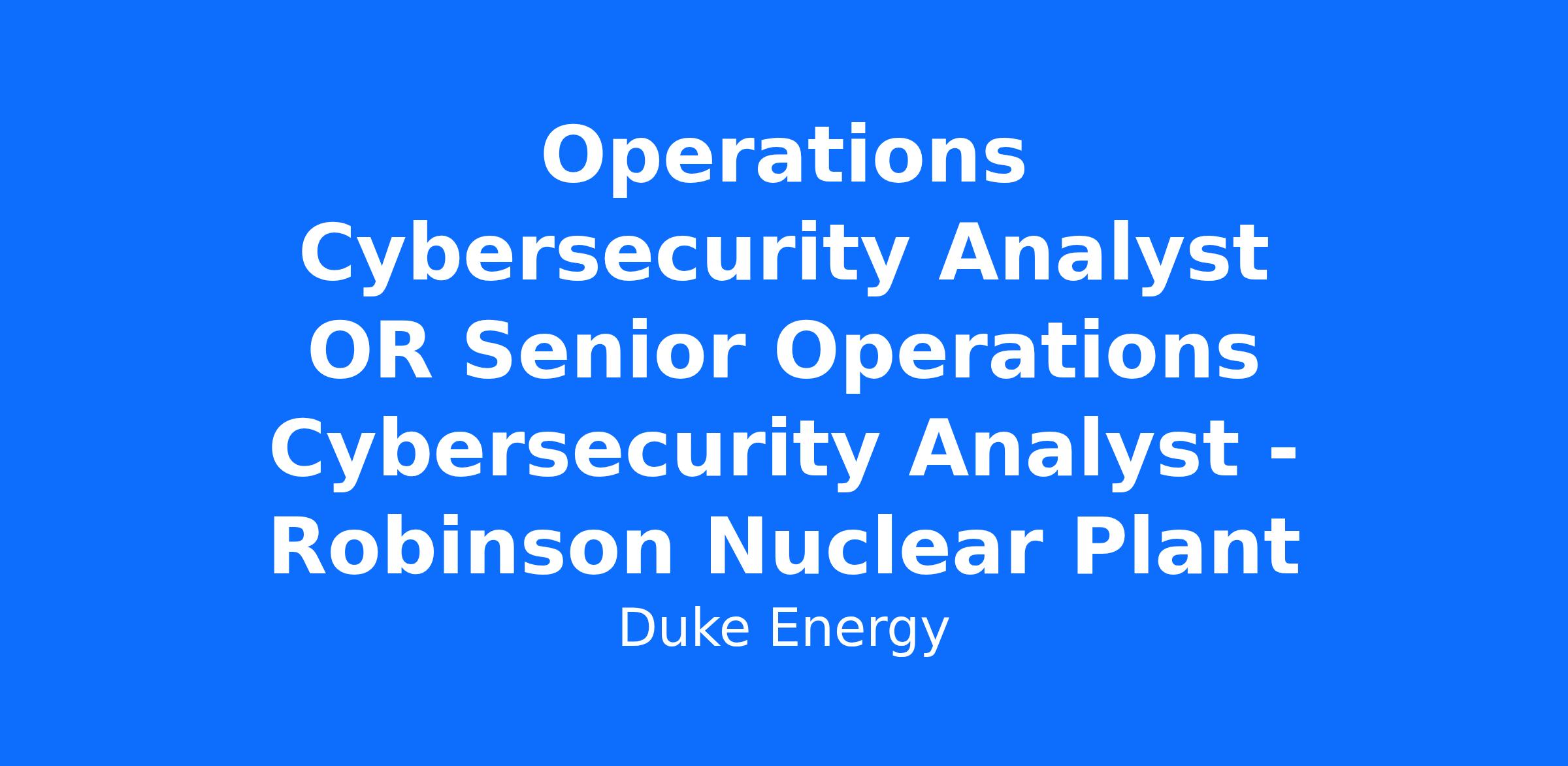 This position will support the Robinson Nuclear Plant Cybersecurity Program and plant process computing network. Responsibilities include responding to cybersecurity threats and events, providing system ownership for digital-based components, supporting the installation base, supporting testing and commissioning for new installations, and maintaining existing digital systems. The cybersecurity program covers all infrastructure assets, including but not limited to firewalls, data diodes, SIEM, industrial control systems, and other digital assets included in the program.