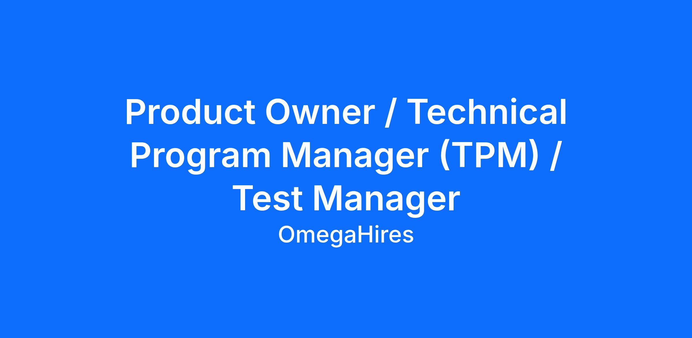 Job Title: Product Owner / Technical Program Manager (TPM) / Test Manager