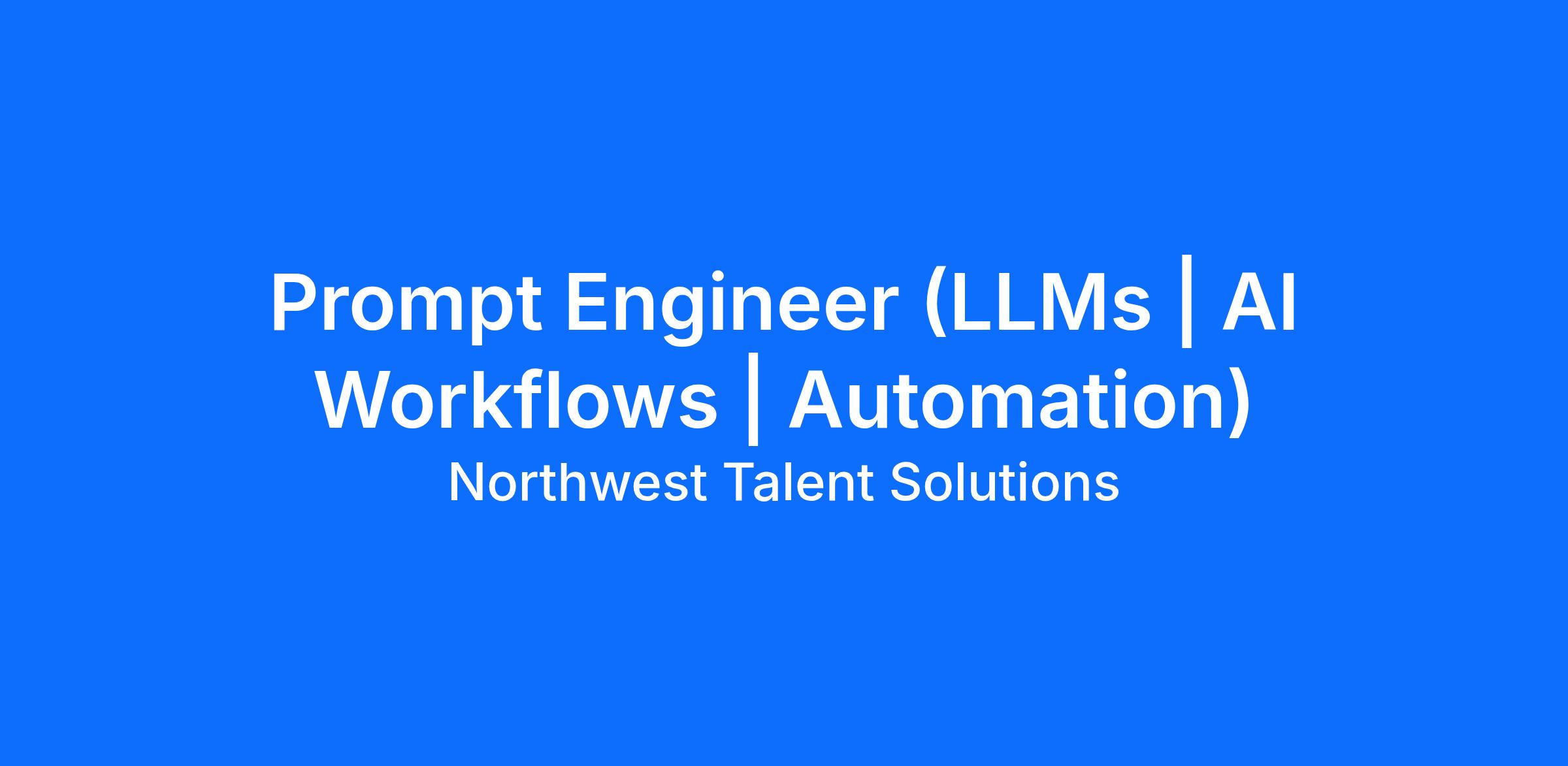 #PromptEngineer #AIJobs #LLM #ArtificialIntelligence #GenerativeAI #AIEngineering #RemoteJobs #Automation #LLMOps #AIWorkflows #TechCareers #HiringNow #FutureOfWork #NorthwestTalentSolutions