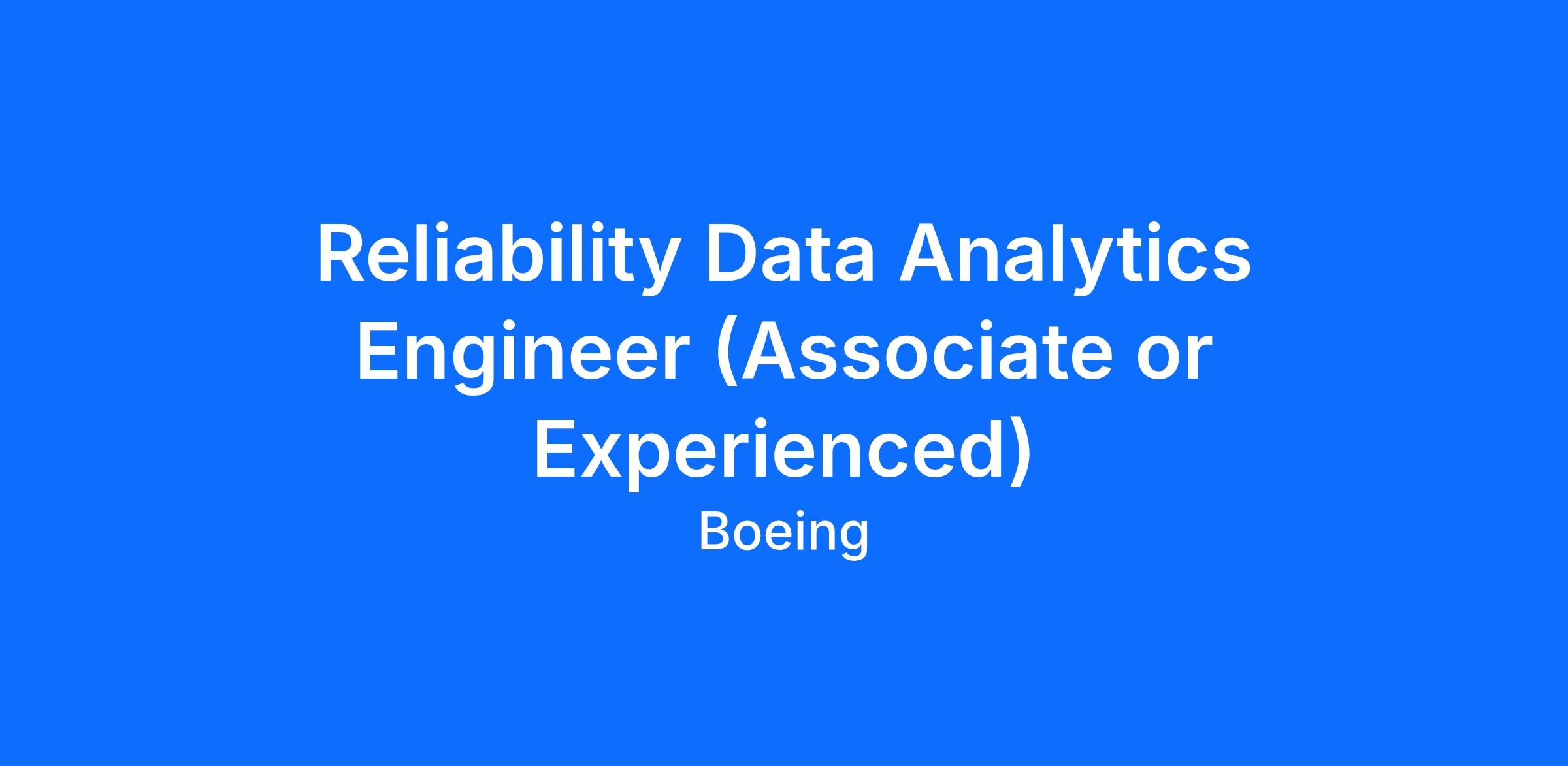 The Boeing CompanyBoeing Commercial Airplanes (BCA) is seeking a Reliability Data Analytics Engineer (Associate or Experienced) with a strong background in the airline industry and expertise in data analytics to join our team in Seal Beach, CA. This role will focus on enhancing the reliability and performance of our aircraft through data-driven insights and analytics. The ideal candidate will be proficient in using Tableau to visualize data and communicate findings effectively to stakeholders, while also possessing data engineering skills to manage and analyze large datasets