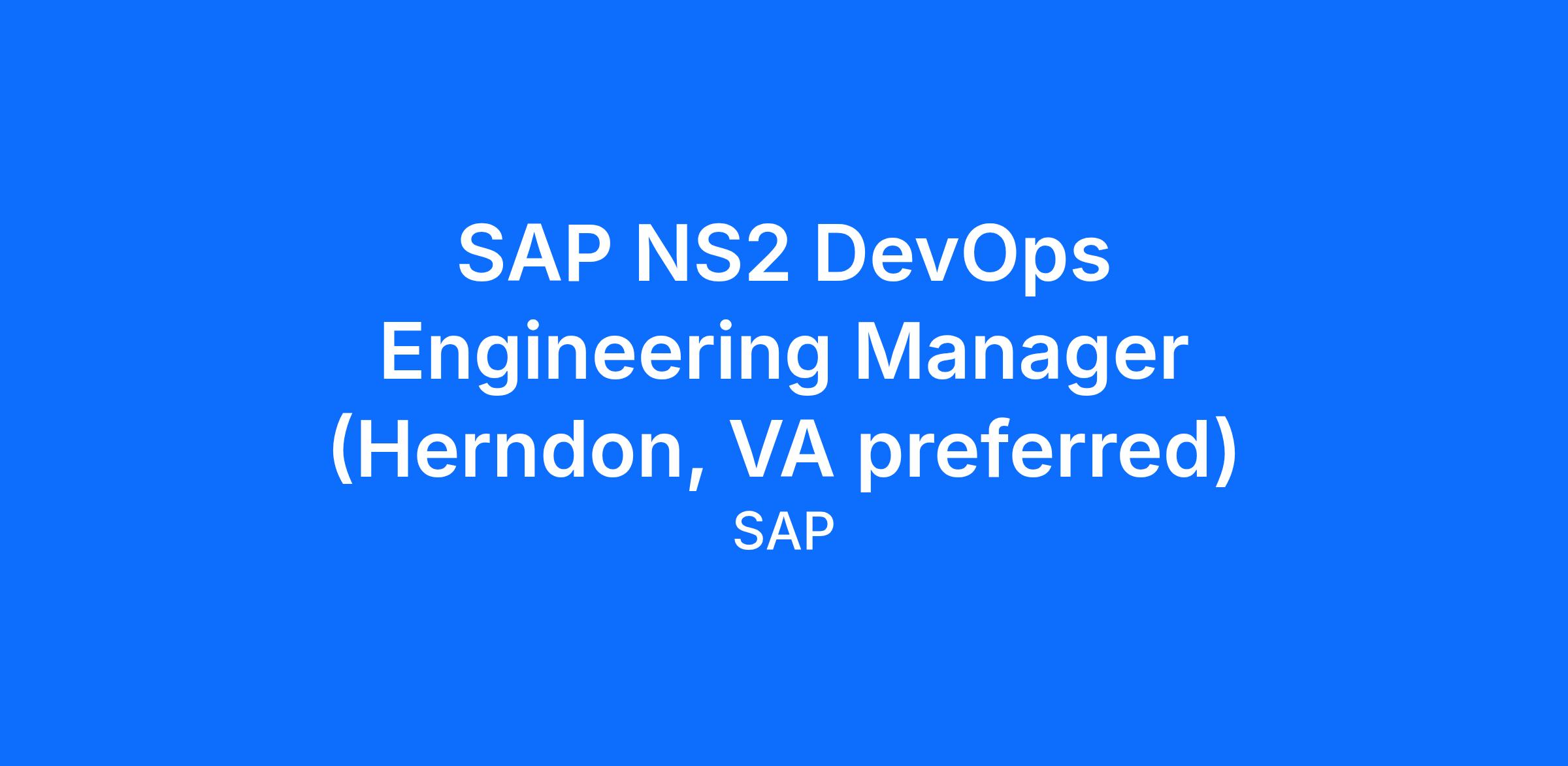 SAP NS2 DevOps Engineering Manager (Herndon, VA preferred)
