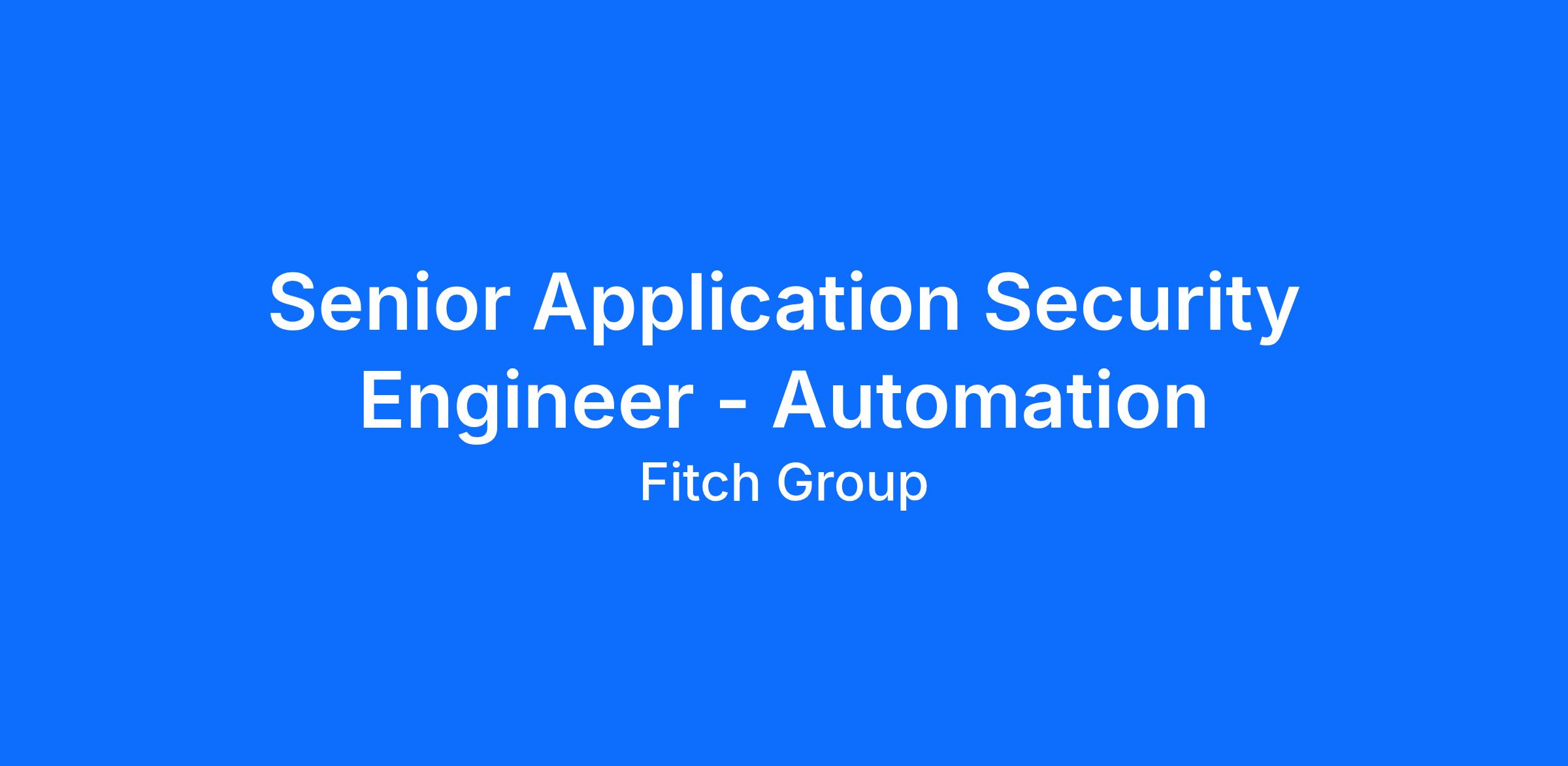 Fitch Group is currently seeking a Senior Application Security Engineer - Automation based out of our Chicago office.